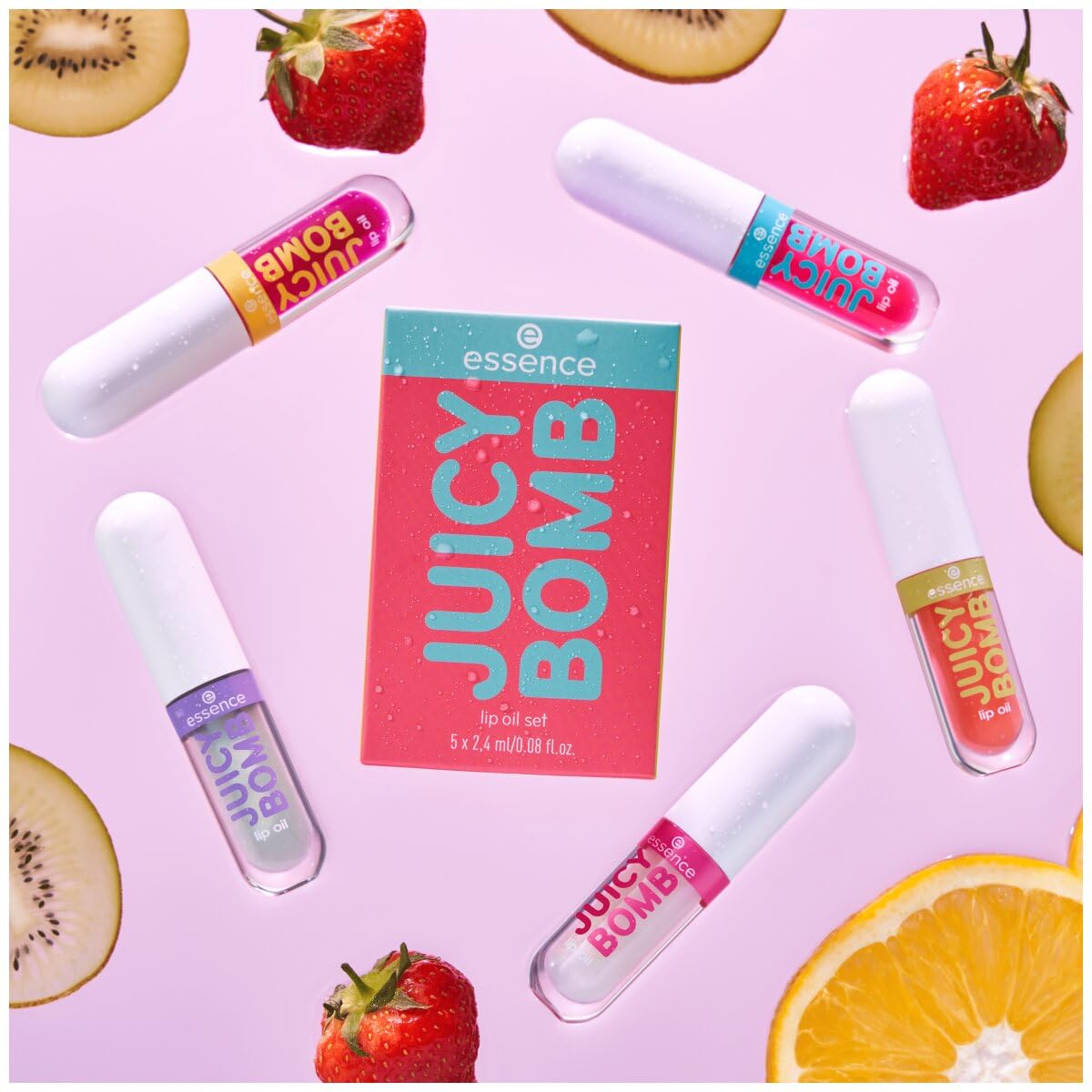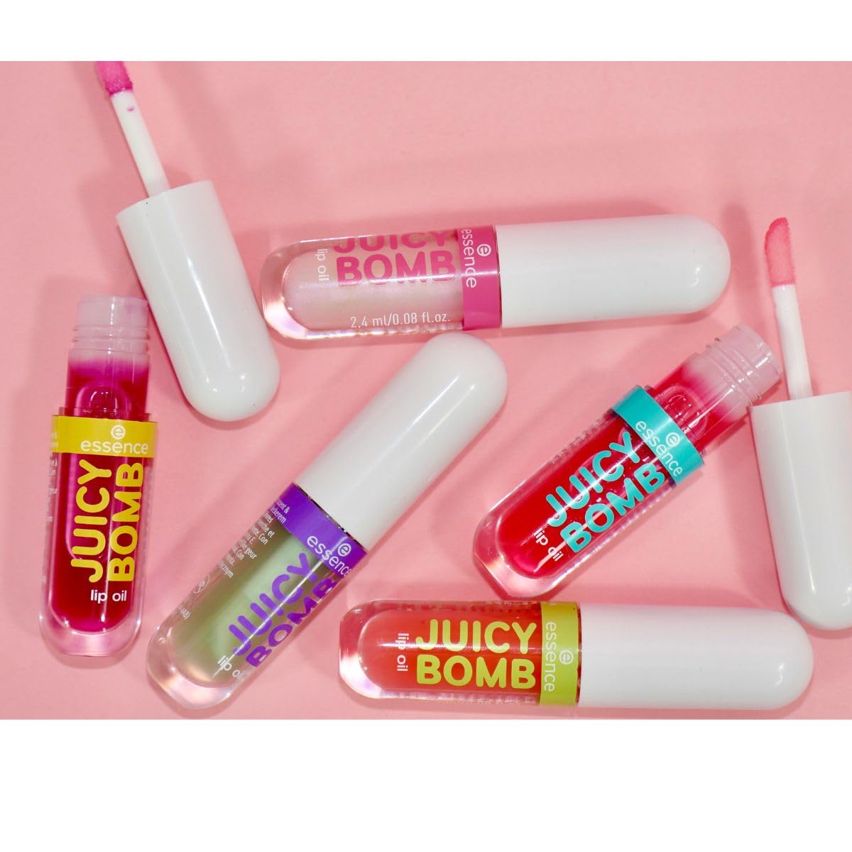 essence JUICY BOMB lip oil set 01, Lippenpflege, Mehrfarbig, acetonfrei, vegan, ohne Mikroplastikpartikel, glutenfrei, 1er Pack (5pcs)