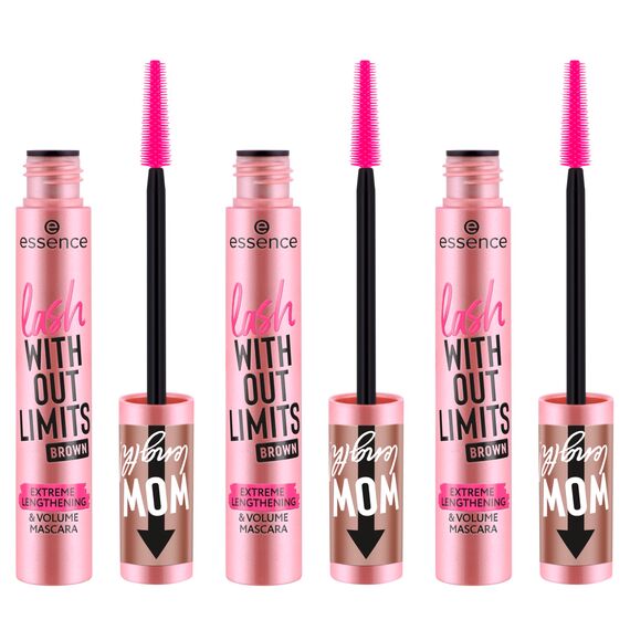 essence lash WITHOUT LIMITS BROWN EXTREME LENGTHENING & VOLUME MASCARA, Nr. 02, Braun, langanhaltend, volumengebend, vegan, ohne Mikroplastikpartikel, Nanopartikel frei, ohne Parfüm, 3er Pack (3x13ml)