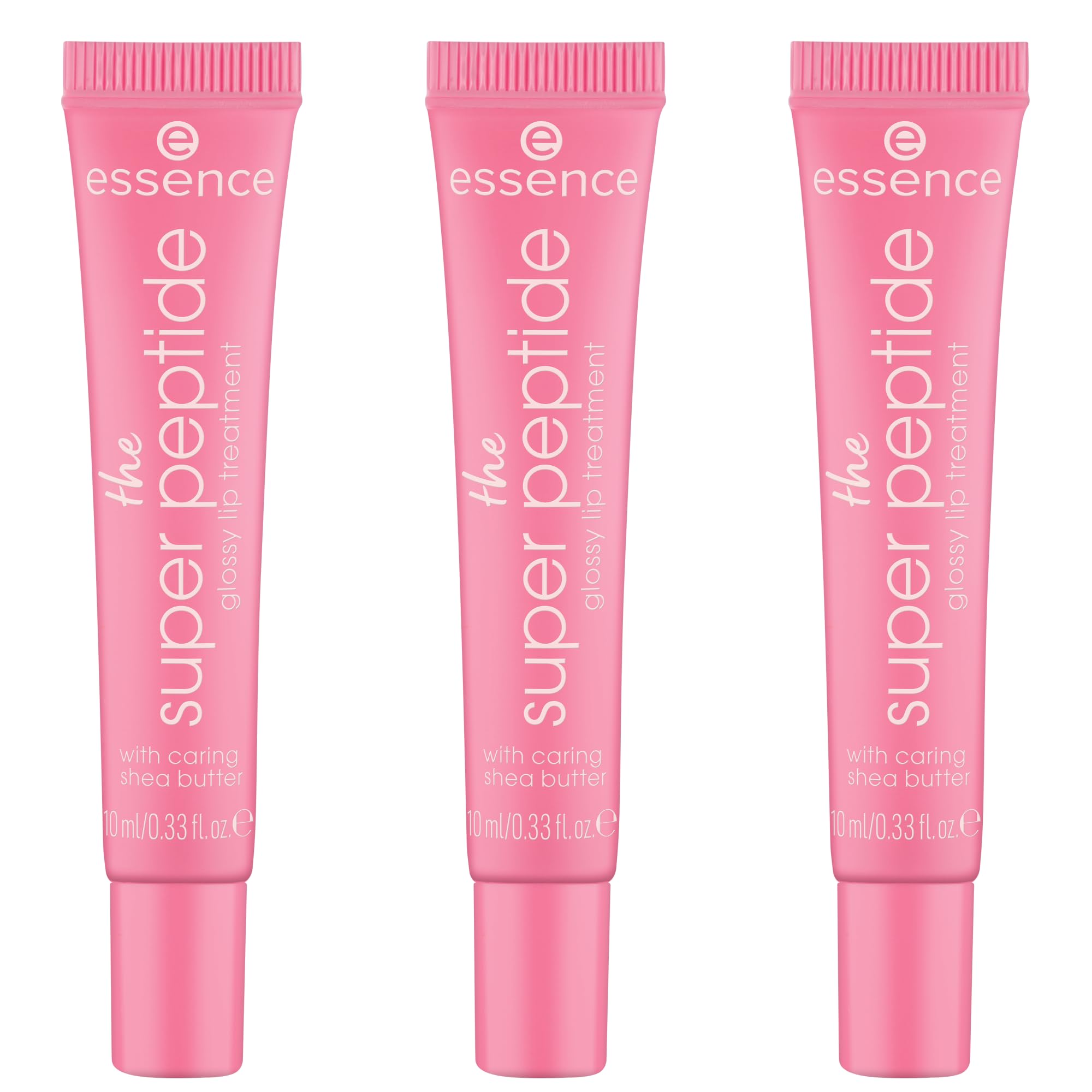 essence the super peptide glossy lip treatment, Lippenbalsam, Nr. 02, Pink, glättend, mit Vitaminen, pflegend, vegan, ohne Parabene, ohne Mikroplastikpartikel, Nanopartikel frei, 3er Pack (3x10ml)