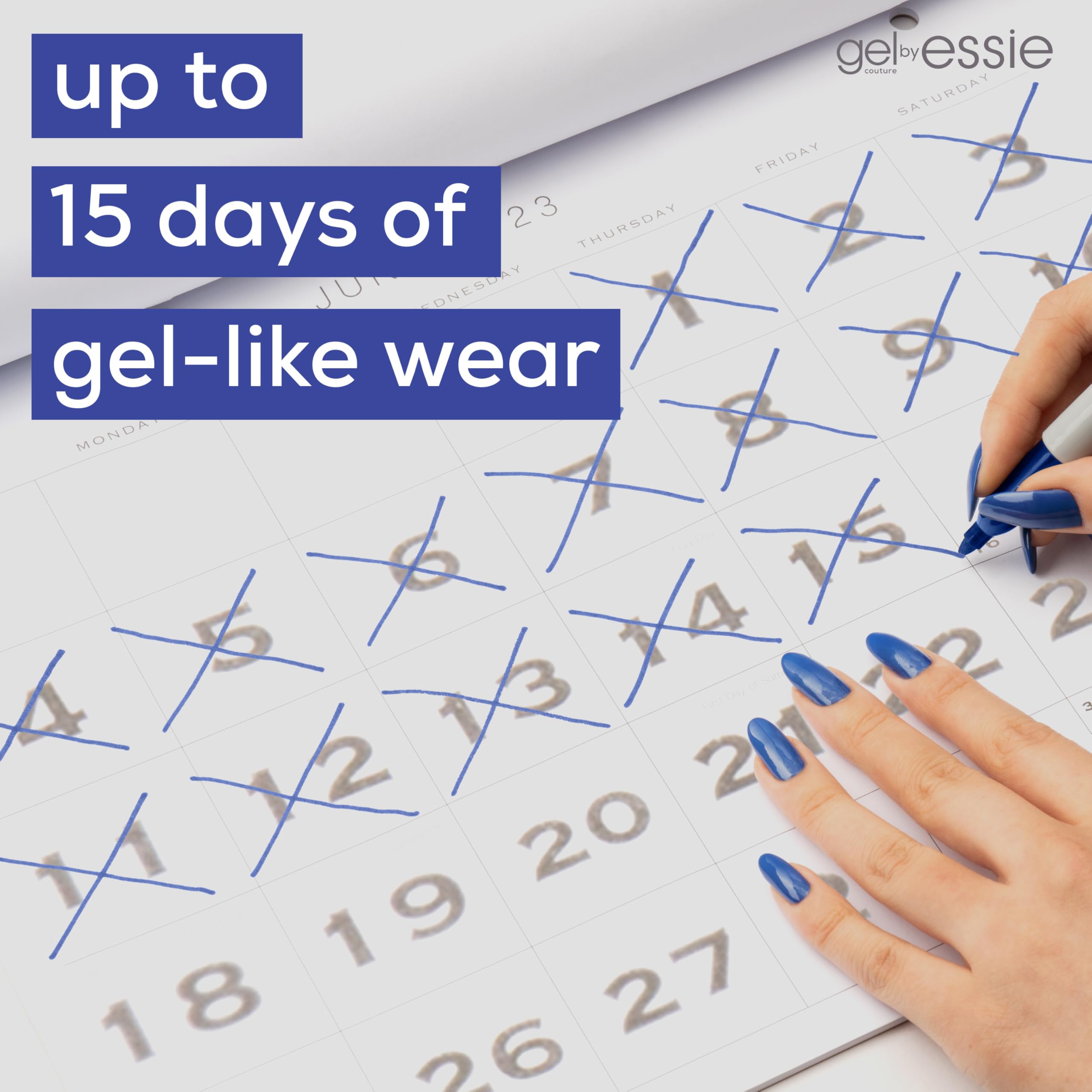 Dank der einfachen Zwei-Schritte-Anwendung laesst sich der Lack kontrolliert und gleichmaessig auftragen. In Kombination mit dem passenden gel couture Top Coat bietet der Nagellack eine Haltbarkeit von bis zu 15 Tagen (bestaetigt in einem Anwendungstest von VerbraucherInnen) und kann wie herkoemmlicher Nagellack entfernt werden.