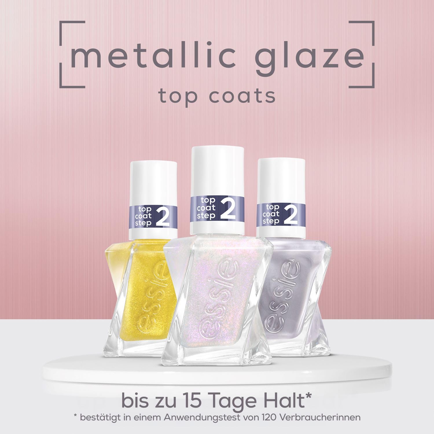 Die gelartige Textur mit bewaehrter flex-e-gel Technologie ermoeglicht ein einfaches, kontrolliertes und gleichmaessiges Auftragen. Der patentierte essie Pinsel unterstuetzt einen praezisen Farbauftrag und sorgt für ein glaenzendes Gel-Glanz-Finish.