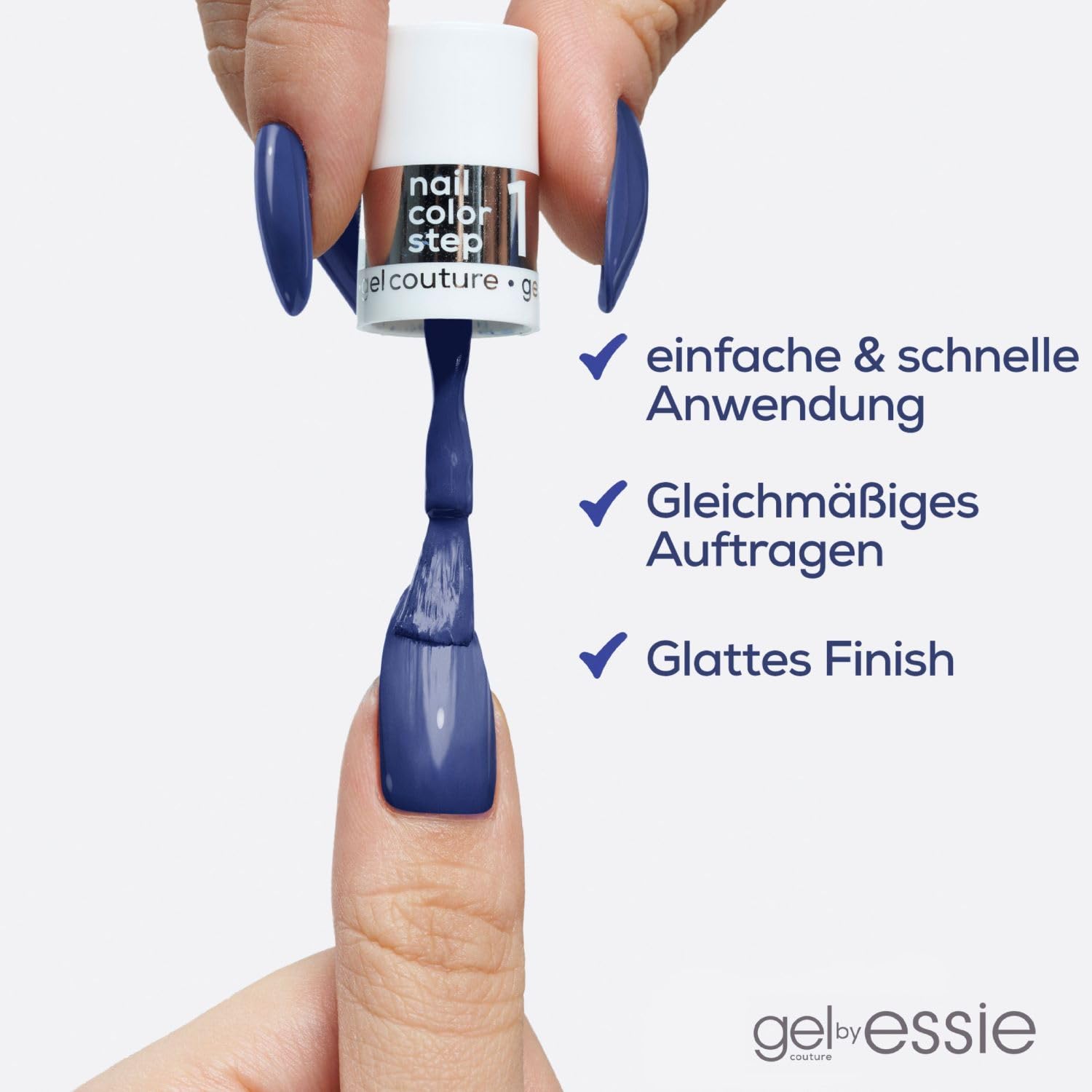 Dank der einfachen Zwei-Schritte-Anwendung laesst sich der Lack kontrolliert und gleichmaessig auftragen. In Kombination mit dem passenden gel couture Top Coat bietet der Nagellack eine Haltbarkeit von bis zu 15 Tagen (bestaetigt in einem Anwendungstest von VerbraucherInnen) und kann wie herkoemmlicher Nagellack entfernt werden.