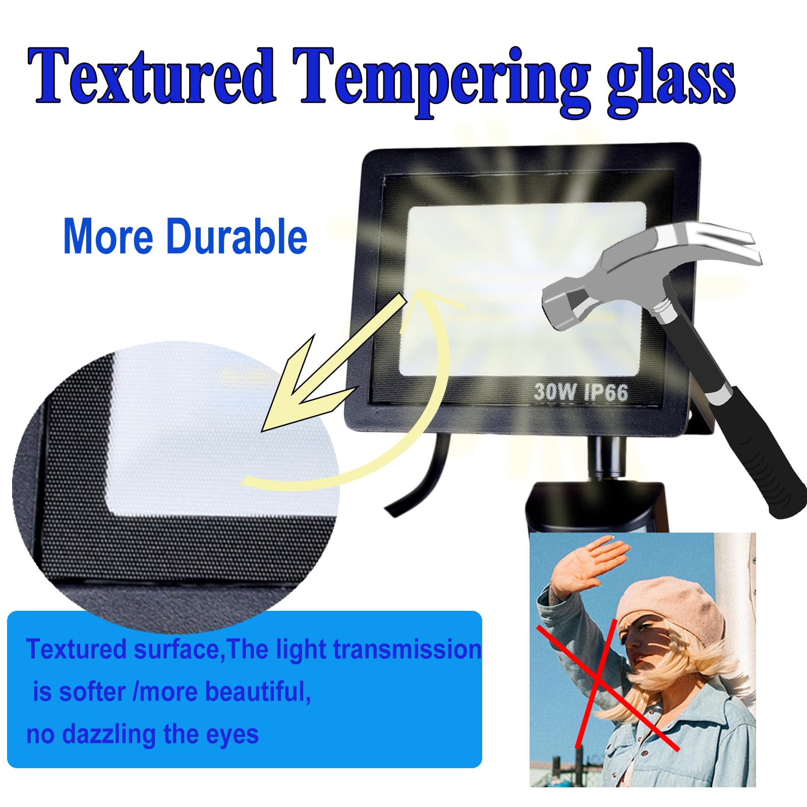 Breite Anwendungen: 30W LED Kalte Bianche 6000K 3000K 4500K 3000lm, dimmbar, mehrere Arbeitsmodi, passend für den Einsatz in Garage, Tor, Strasse, Garten, Balkon usw.
