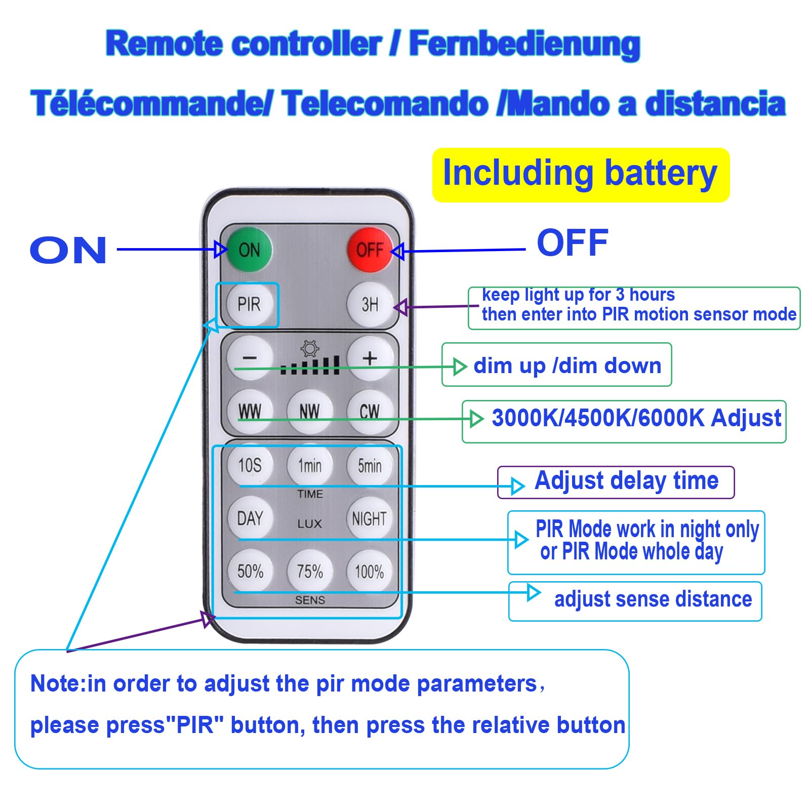 Etrogo 30W LED Strahler mit Bewegungsmelder Aussen Fernbedienung 3000LM 6000K 3000K 4500K Dimmbar LED IP66 Wasserdicht für Garten Garage Hof Sportplatz