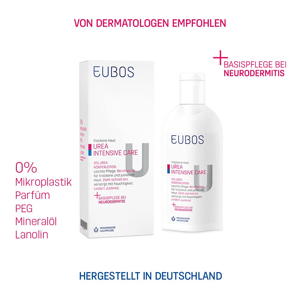 EUBOS UREA INTENSIVE CARE | 3% UREA Körperlotion | Feuchtigkeitspflege für trockene, juckende Haut | Wirkt beruhigend und lindert Juckreiz | Hautverträglichkeit dermatologisch bestätigt | 200ml