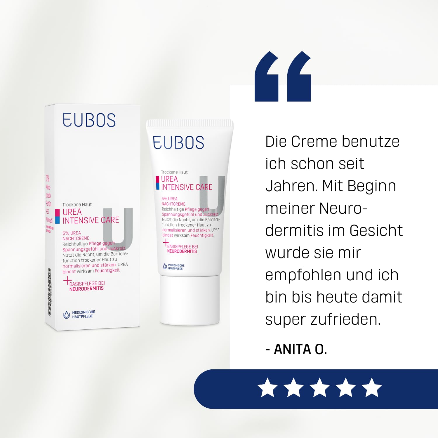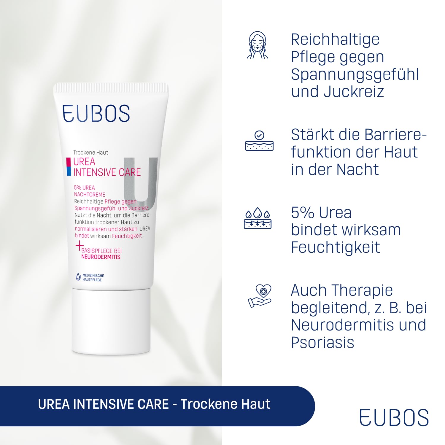 Eubos | 5% UREA Nachtcreme | 50ml| für trockene Haut | Hautvertäglichkeit dermatologisch bestätigt | Verbesserung Hydratationsfähigkeit der Haut | Spezial-Pflegecreme
