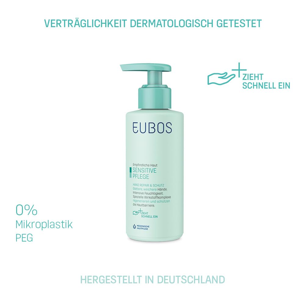 EUBOS SENSITIVE PFLEGE - Hand Repair & Schutz Pumpspender - Handcreme für trockene, rissige Hände - Für spürbar glattere und weichere Hände - Hautverträglichkeit dermatologisch bestätigt - 150ml