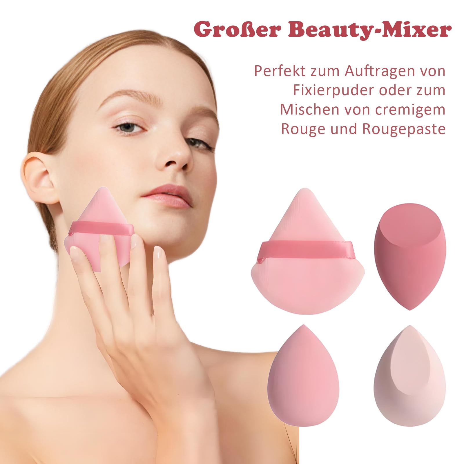 Das Set enthält 8 Beauty Blender in unterschiedlichen Formen, darunter flache, schräge und runde Varianten. Diese ermöglichen sowohl ein präzises Arbeiten an schwer erreichbaren Stellen wie Augen, Nase und Mund als auch ein schnelles, ebenmässiges Auftragen auf grösseren Flächen wie Stirn, Wangen und Kinn. Die Schwämme können trocken für Puderprodukte oder angefeuchtet für flüssige und cremige Texturen verwendet werden, um ein besonders natürliches Ergebnis zu erzielen.