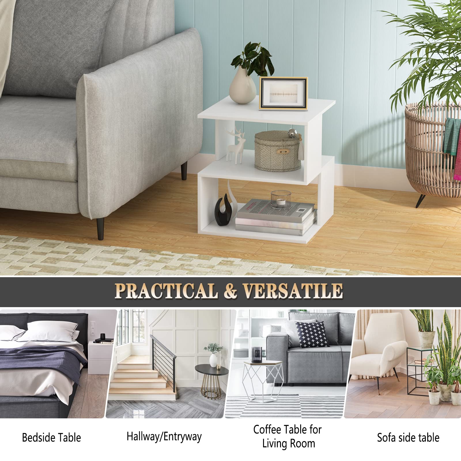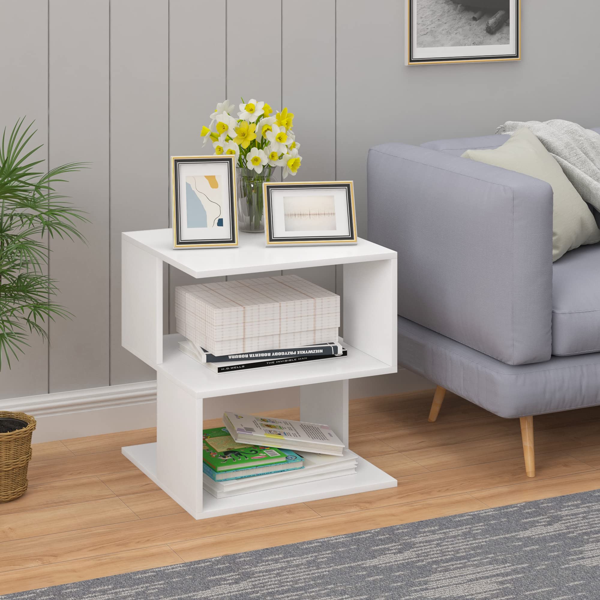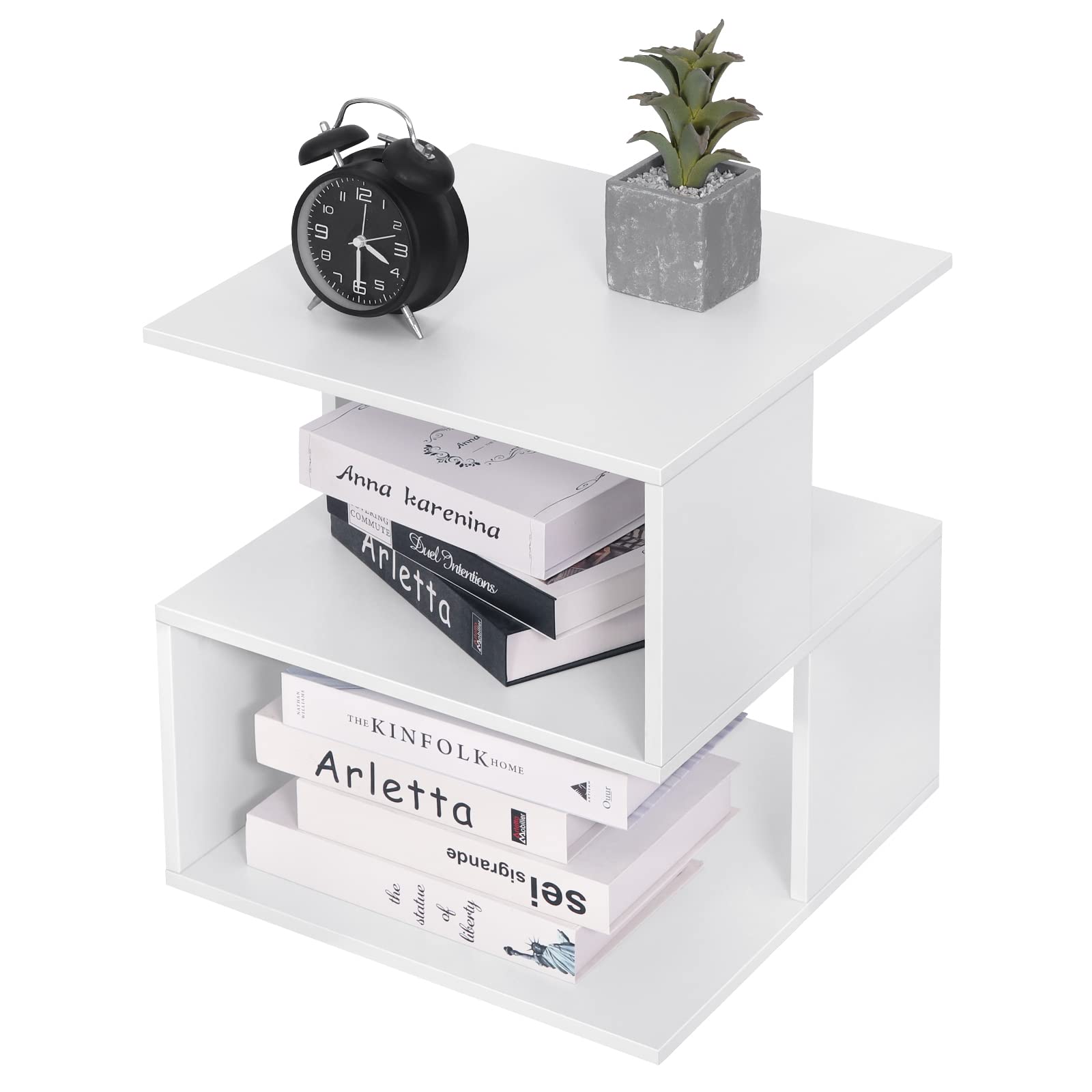 EUGAD Nachttisch Weiss, 35 x 35 x 41,5 cm, mit Zwei offenen Fächern, Nachtschrank für Schlafzimmer, Wohnzimmer oder Büro, 0166ZZ