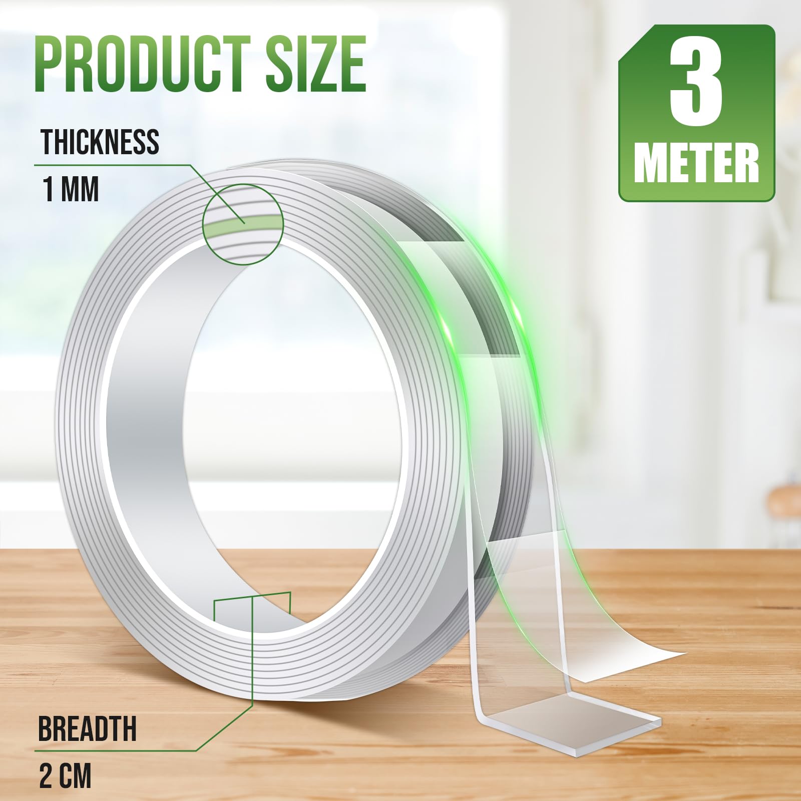 3,0 Meter Transparentes Nano-Doppelseitiges Klebeband