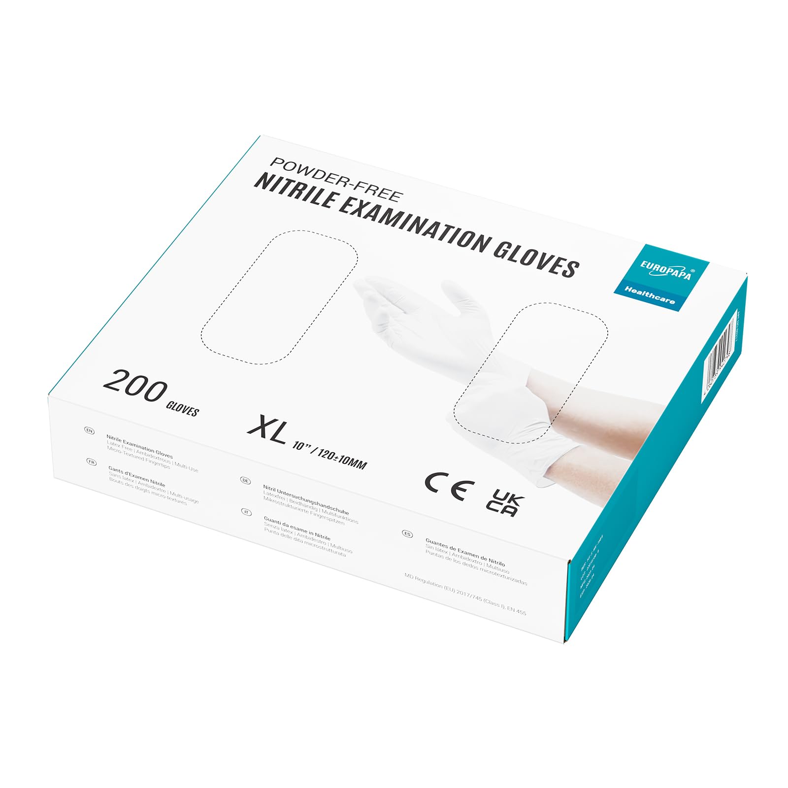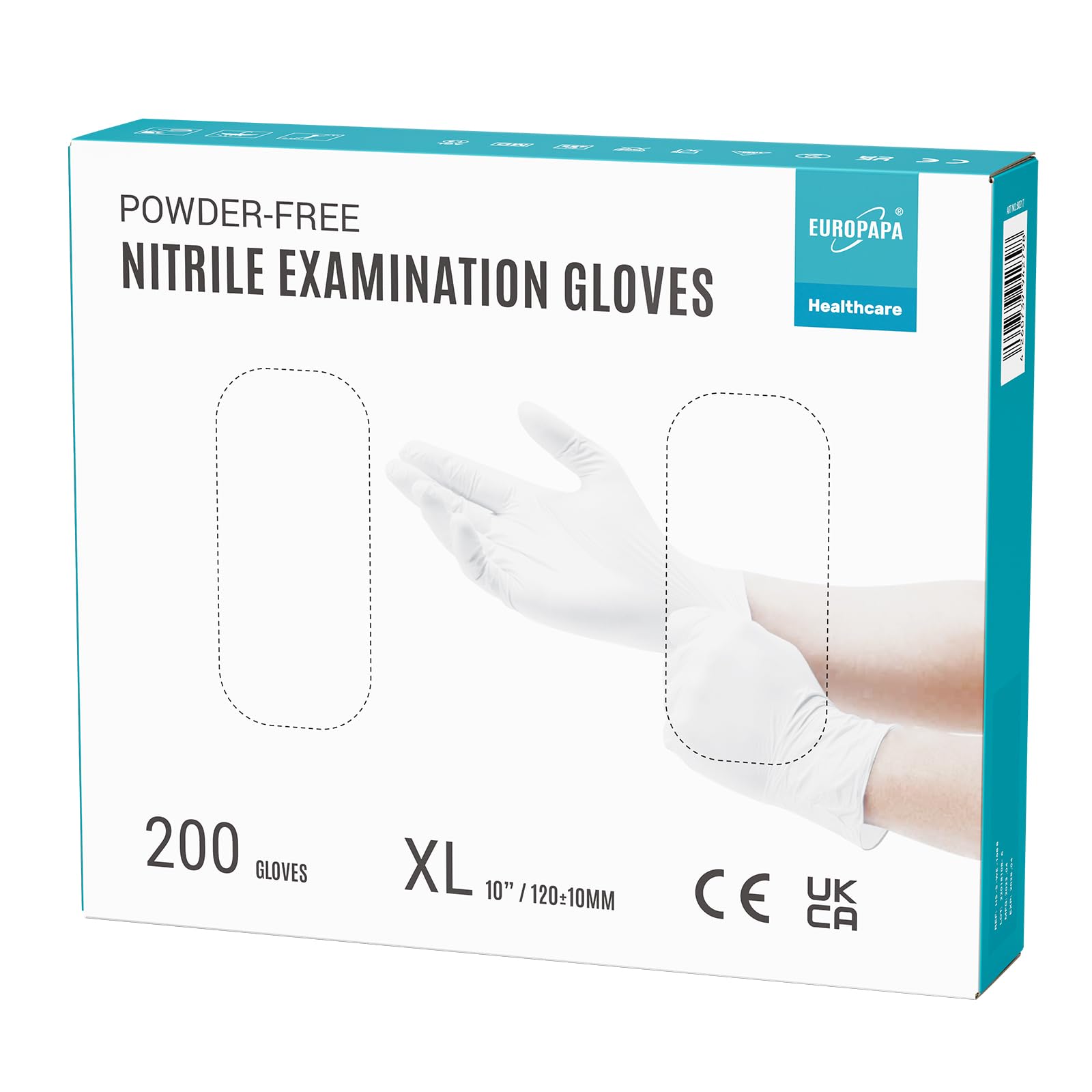 EUROPAPA® 200x Einweghandschuhe Nitrilhandschuhe puderfrei Untersuchungshandschuhe EN455 EN374 latexfrei Einmalhandschuhe Handschuhe in Gr. S, M, L & XL verfügbar (XL, Weiss)