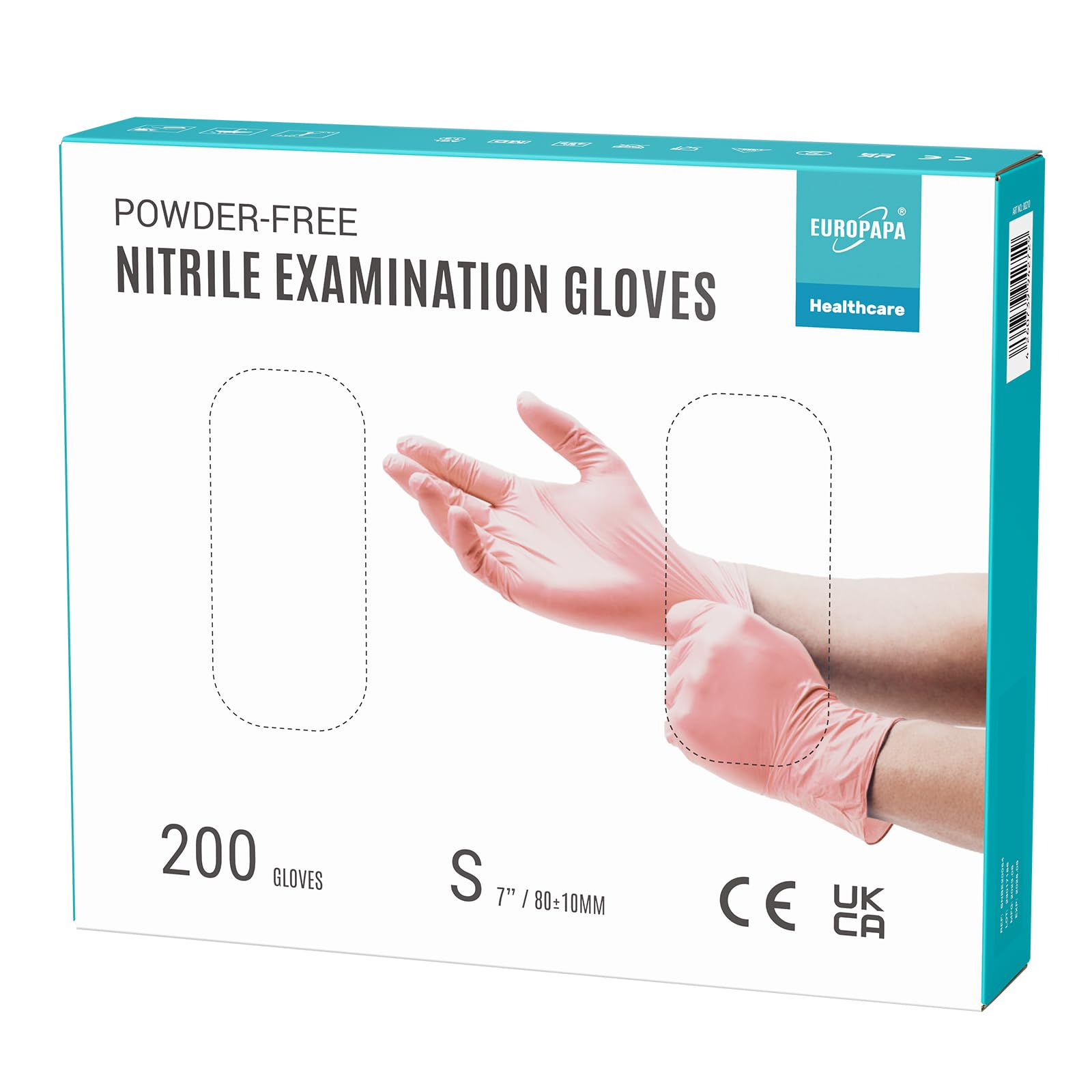 EUROPAPA® 200x Einweghandschuhe Nitrilhandschuhe puderfrei Untersuchungshandschuhe EN455 EN374 latexfrei Einmalhandschuhe Handschuhe in Gr. S, M, L & XL verfügbar (S, Pink)