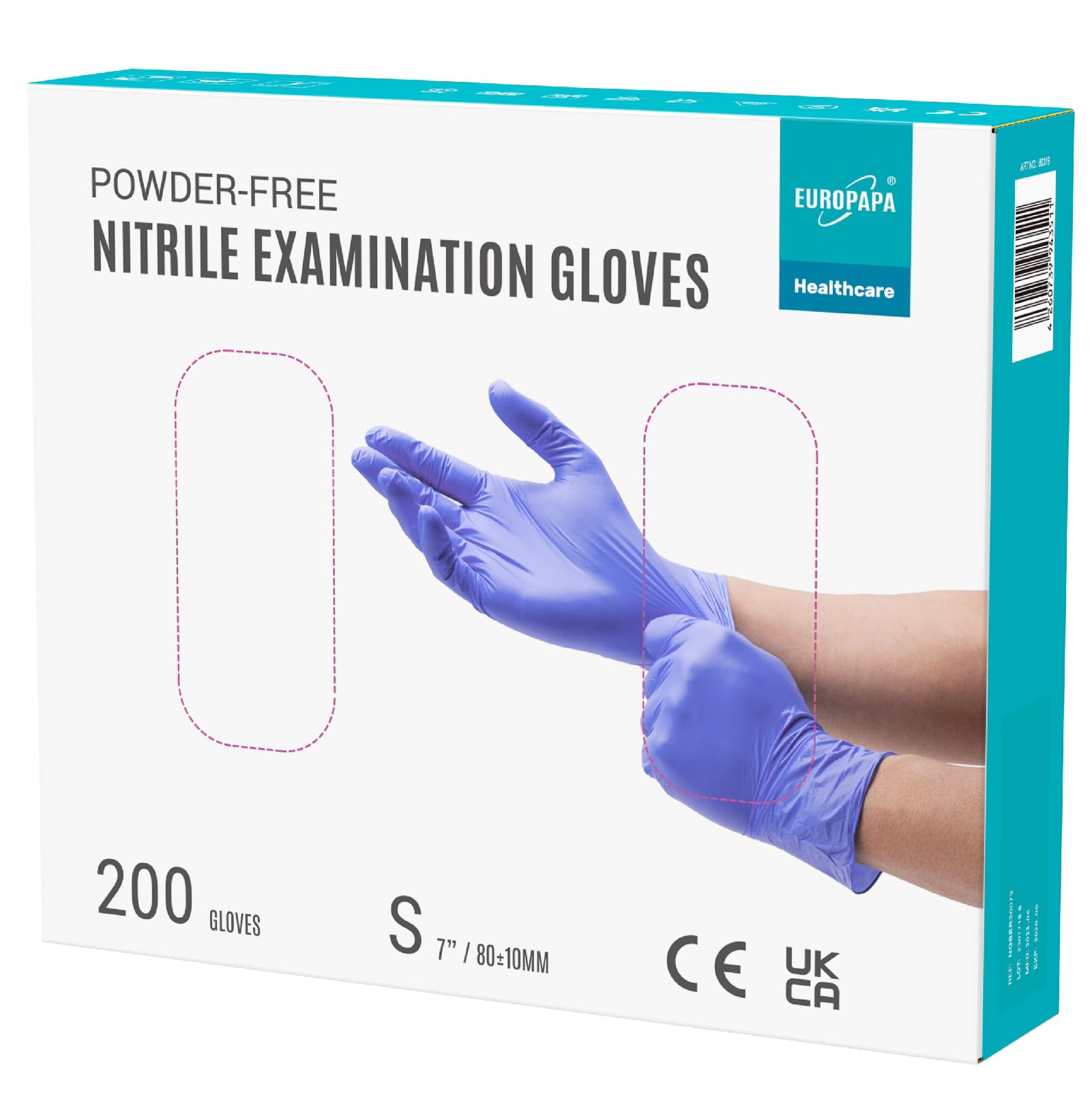 EUROPAPA® 200x Einweghandschuhe Nitrilhandschuhe puderfrei Untersuchungshandschuhe EN455 EN374 latexfrei Einmalhandschuhe Handschuhe in Gr. S, M, L & XL verfügbar (S, Lila)