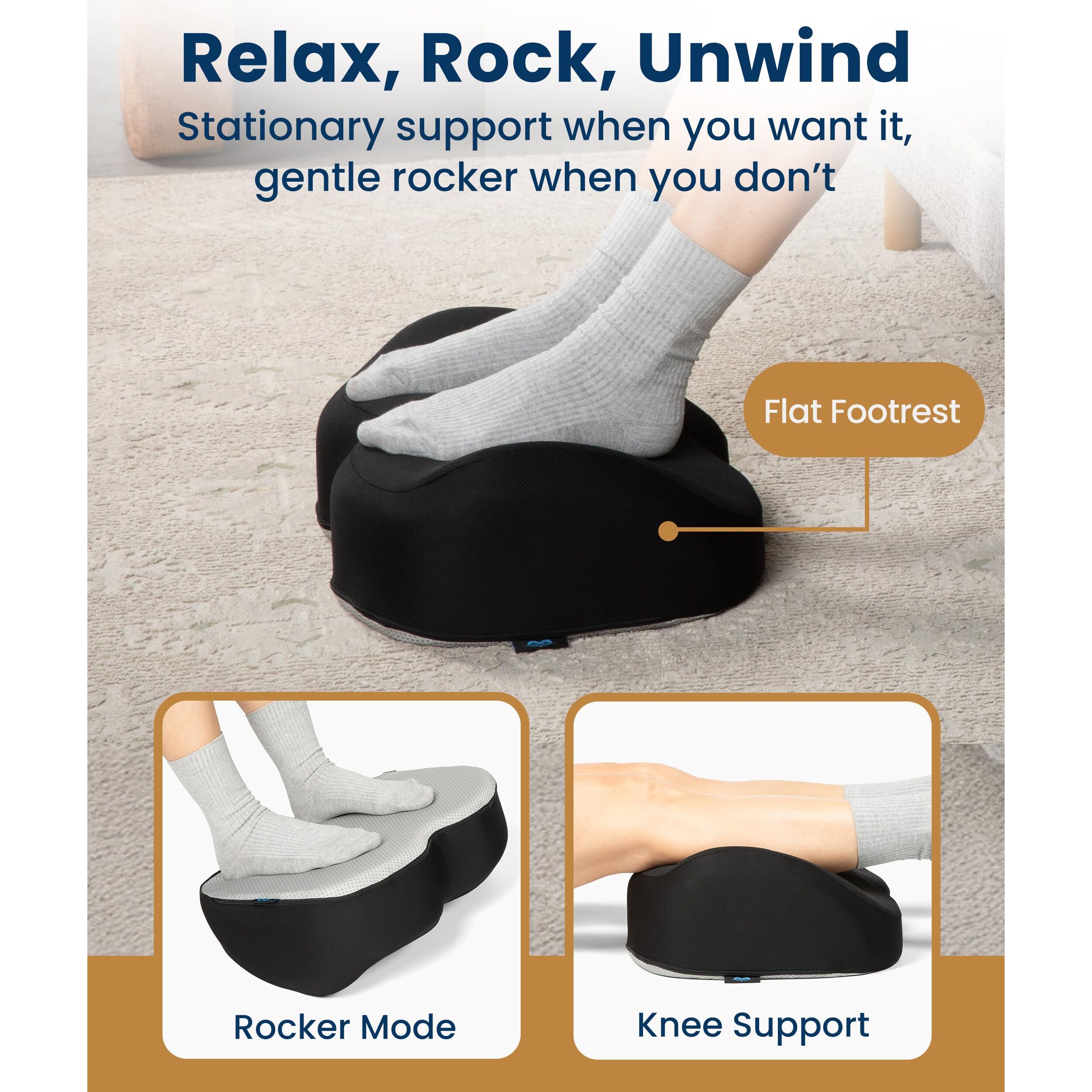 Erleben Sie unvergleichlichen Komfort und Unterstützung mit der ergonomischen Fussstütze von Everlasting Comfort unter dem Schreibtisch. Dieser Fusshocker aus Memory-Schaum wurde sowohl für Büro als auch zu Hause entwickelt und hebt Ihre Füsse an, verbessert die Körperhaltung und bietet Linderung von Rücken- und Beinschmerzen. Die Premium-Memory-Schaum-Konstruktion sorgt für dauerhafte Haltbarkeit und passt sich gleichzeitig der Form Ihrer Füsse an und bietet eine weiche und dennoch feste Unterstützung. Das ergonomische Tropfen-Design fördert eine bessere Wirbelsäulenausrichtung, wodurch es ideal für lange Stunden am Schreibtisch oder Gaming-Sessions ist. Vielseitig in der Funktionalität, Sie können die Fussstütze in einer stationären Position verwenden oder sie für eine sanfte Schaukelbewegung umdrehen, um Ihre Füsse aktiv zu halten. Der Bezug ist abnehmbar und maschinenwaschbar, so dass die Wartung zum Kinderspiel wird. Egal, ob Sie Ihren Bürokomfort verbessern, Ihre Haltung verbessern oder einfach nur beim Spielen entspannen möchten, die Everlasting Comfort Fussstütze ist die ideale Ergänzung für Ihr Setup.