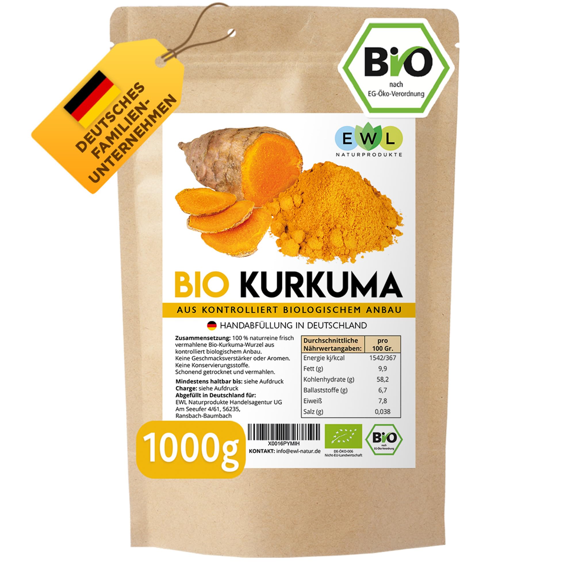 Bio Kurkuma Pulver I Kurkuma Pulver Bio I Kurkumapulver aus kontrolliert biologischem Anbau I Abgefüllt und kontrolliert bei uns in Deutschland 1kg Curcuma Pulver