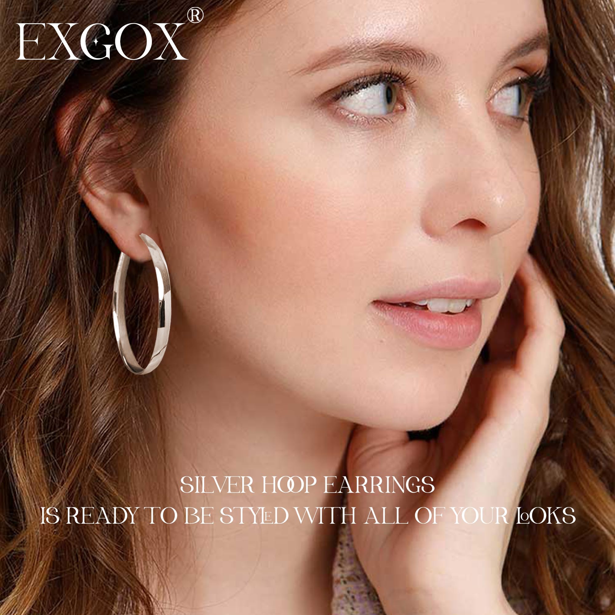 EXGOX Creolen Silber 925 für Damen 5mm Breite Gross Hypoallergene 14K Vergoldete Ohrringe Gold 30/40/50/60/70mm