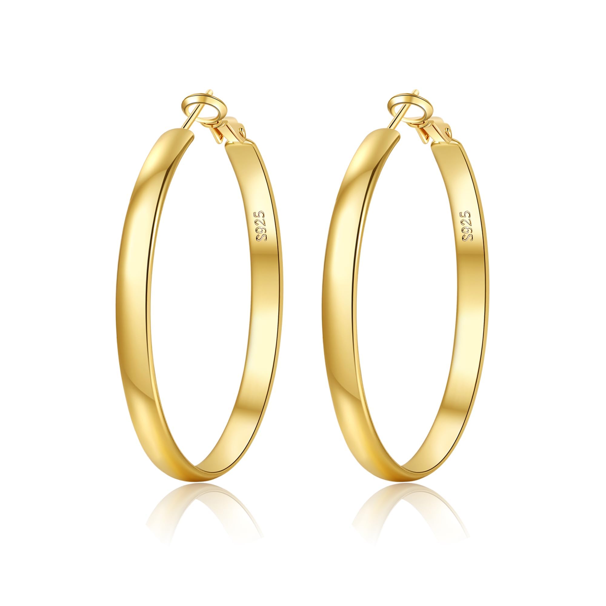 EXGOX Creolen Silber 925 für Damen 5mm Breite Gross Hypoallergene 14K Vergoldete Ohrringe Gold 30/40/50/60/70mm