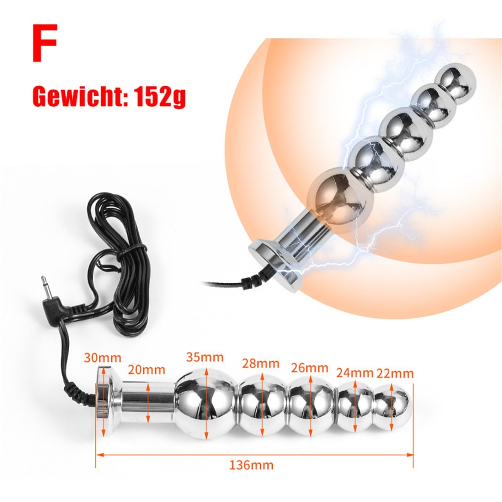 Extrem Electro Shock Analplug Zubehör, Edelstahl Anal beads Butt Plug Masturbator - Vaginal Plug Analkugeln Anal Dilatator Elektrosex Analdildo Doppelpoliger Sexspielzeug für Frauen Männer Paare(F)