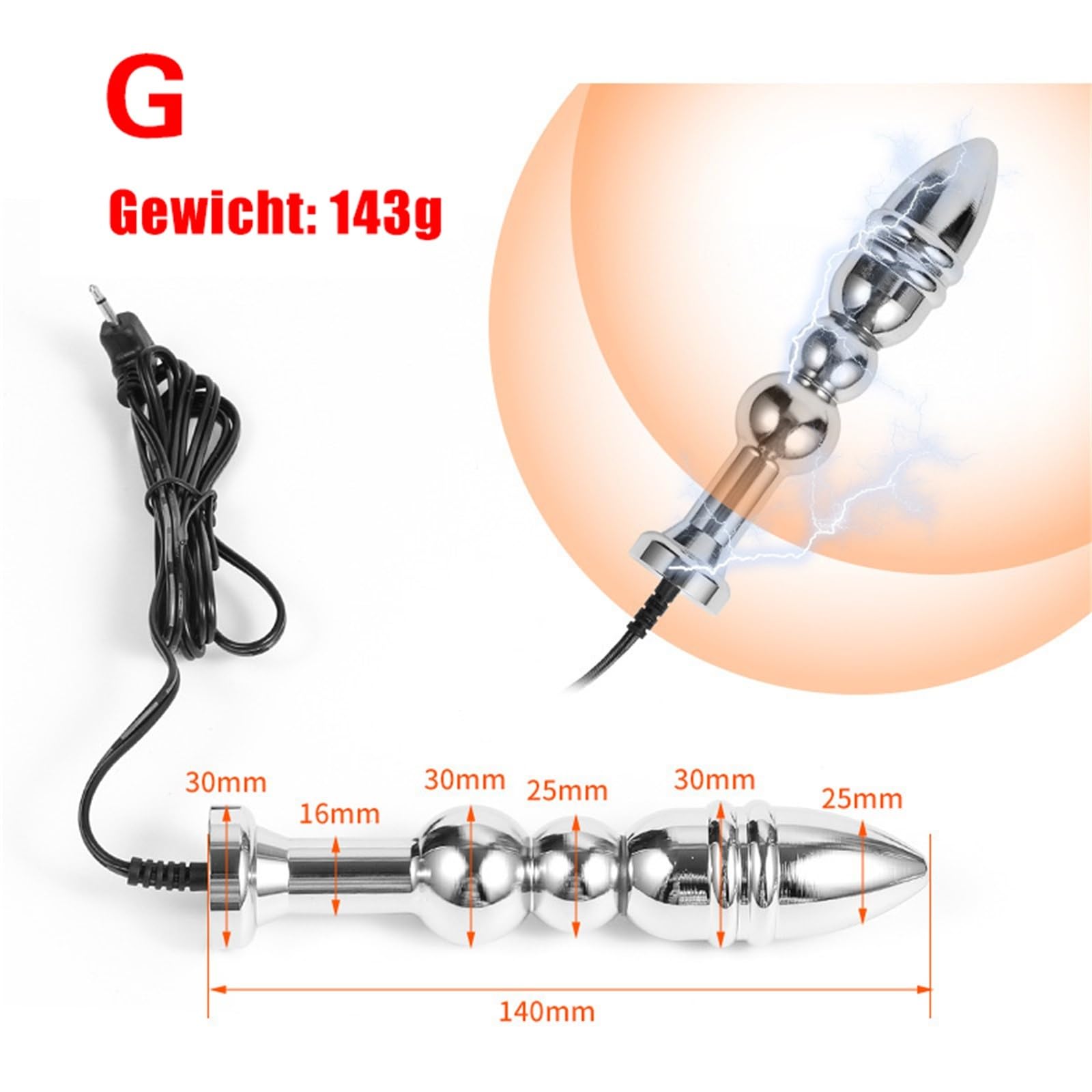 • Der Elektro Shock Analplug besteht aus hochwertigem Edelstahl. Der SM Metall Analplug ist sorgfältig poliert und gratfrei, Und es kann nach Gebrauch gewaschen werden und die Hygiene ist auch sehr gut! (Benötigt Host, um Strom zu liefern!)