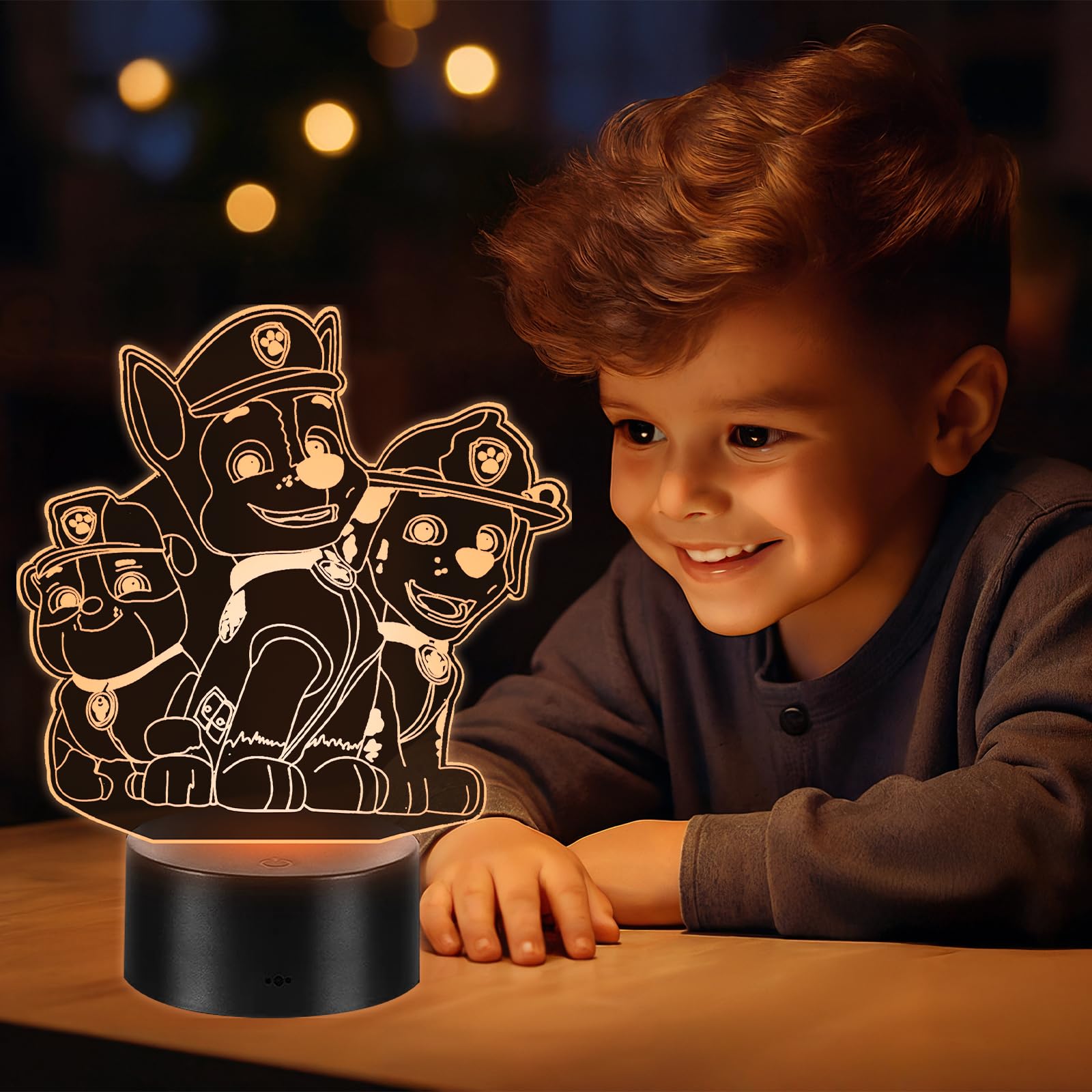 2 Stück Paw Dog Lampe mit Timer, Dog Patrol Geschenke, 3D LED Illusion 16 Farben Paw Dog Nachtlicht USB Smart Touch Fernbedienung Tischlampe Dog Licht für Kinderzimmer Dekoration Urlaub Geschenke