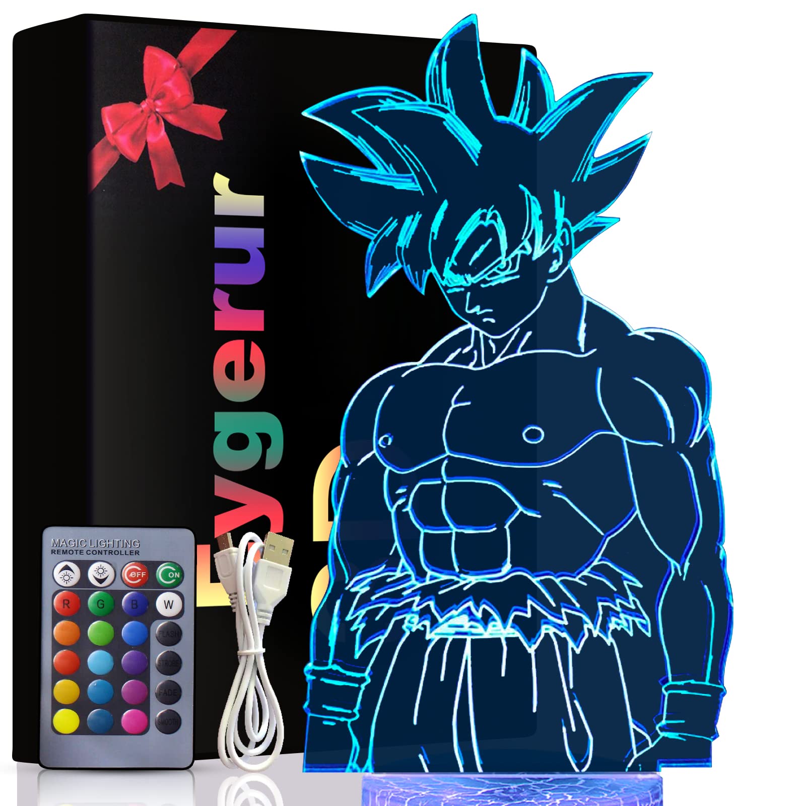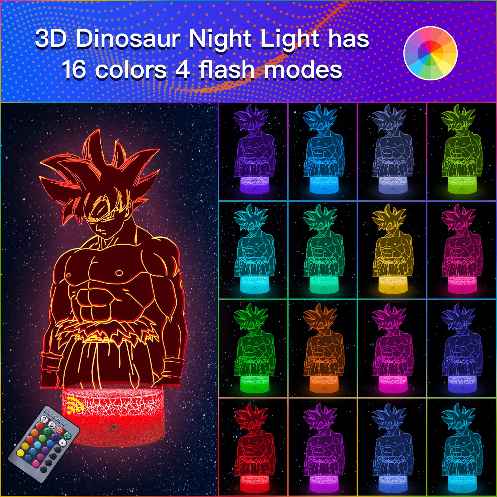 Dragon Ball Geschenke Spielzeug Dekoration Nachtlicht 3D LED Illusion Lampe Mit Fernbedienung & Touch 7 Farben + 16 Farben wechselnd Opreated Dimmbare Nachttischlampe für Kinder Männer Goku Fans