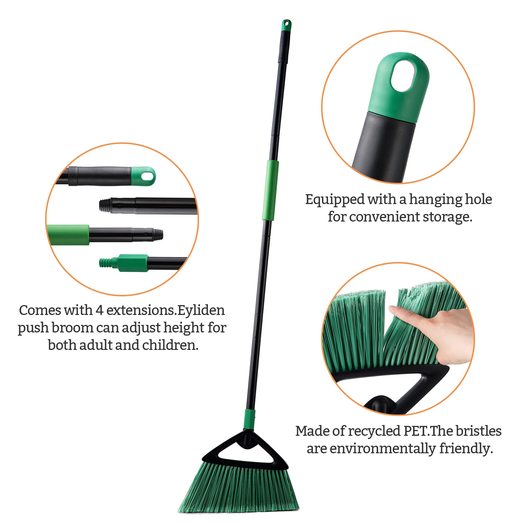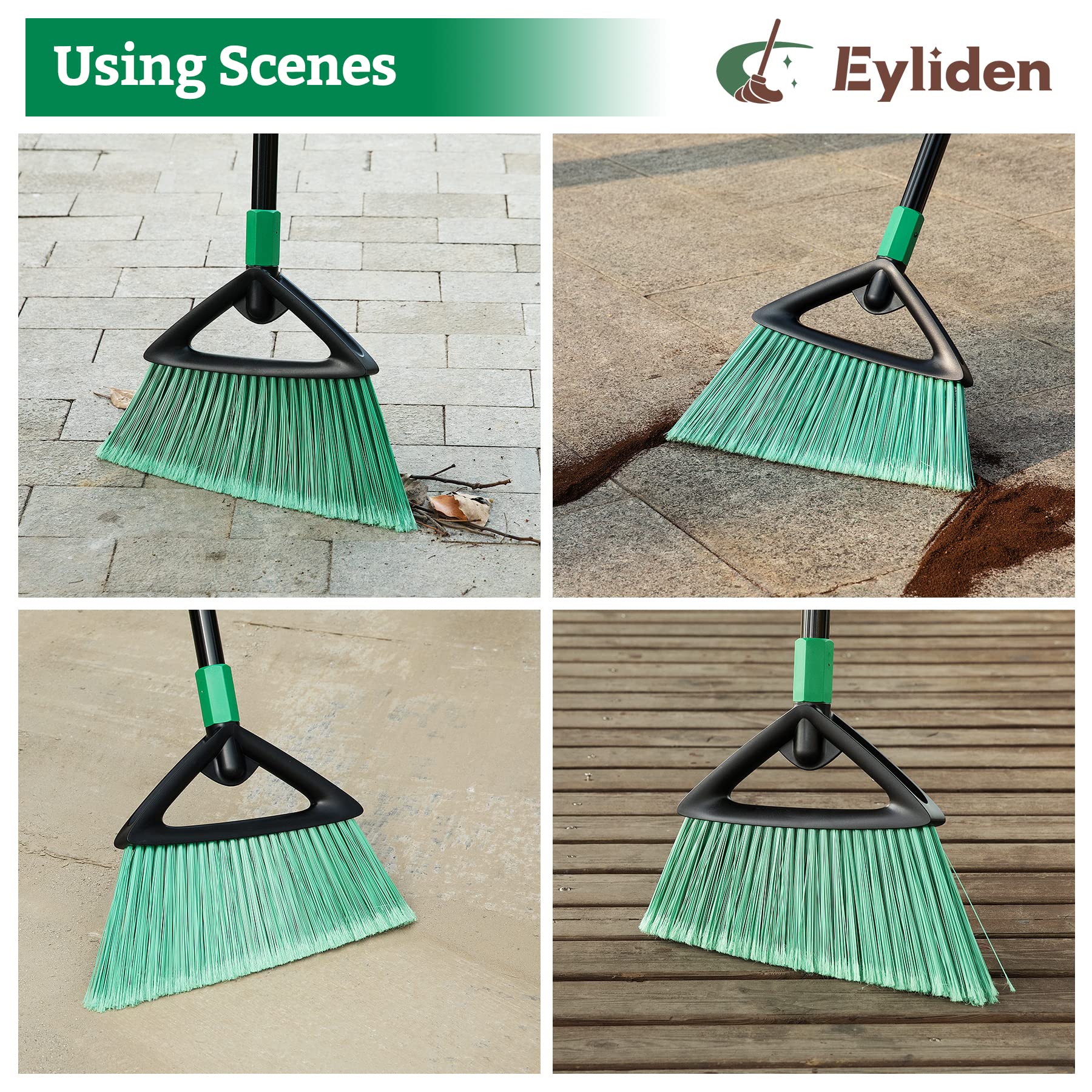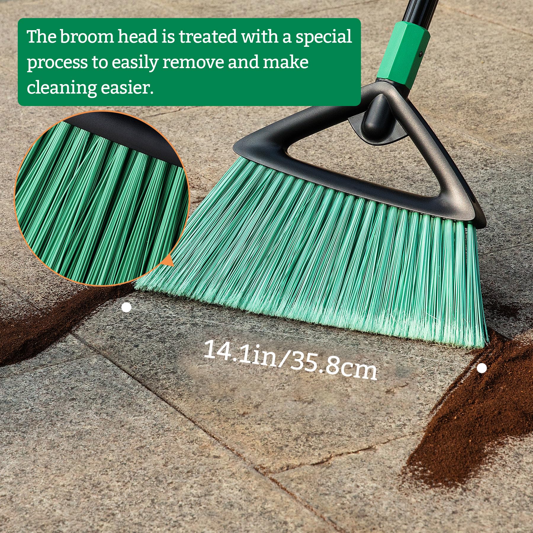 Eyliden Besen mit Stiel, Abgewinkelter Strassenbesen mit 146 cm langem Stiel, Steifen Borsten Besen für die Innen- und Aussenreinigung, Robust Bodenbesen für Haushalt Strassen Garten, Grüner