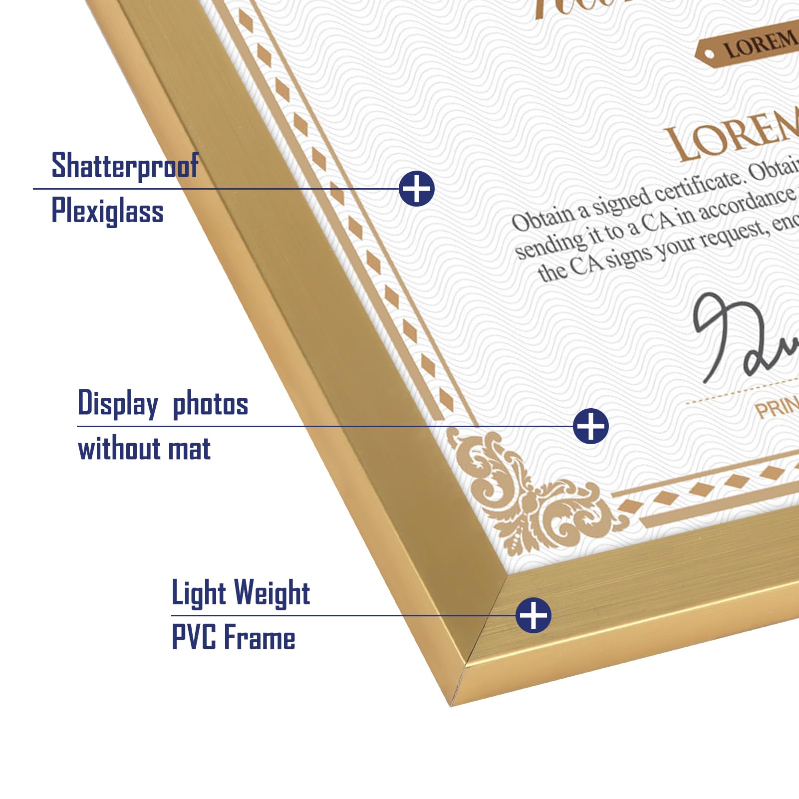 EYMPEU Bilderrahmen A4(21 x 29,7 cm) 18er-Set, für Wand und Tisch, geeignet für den Einsatz in Büros und Wohnungen, Gold
