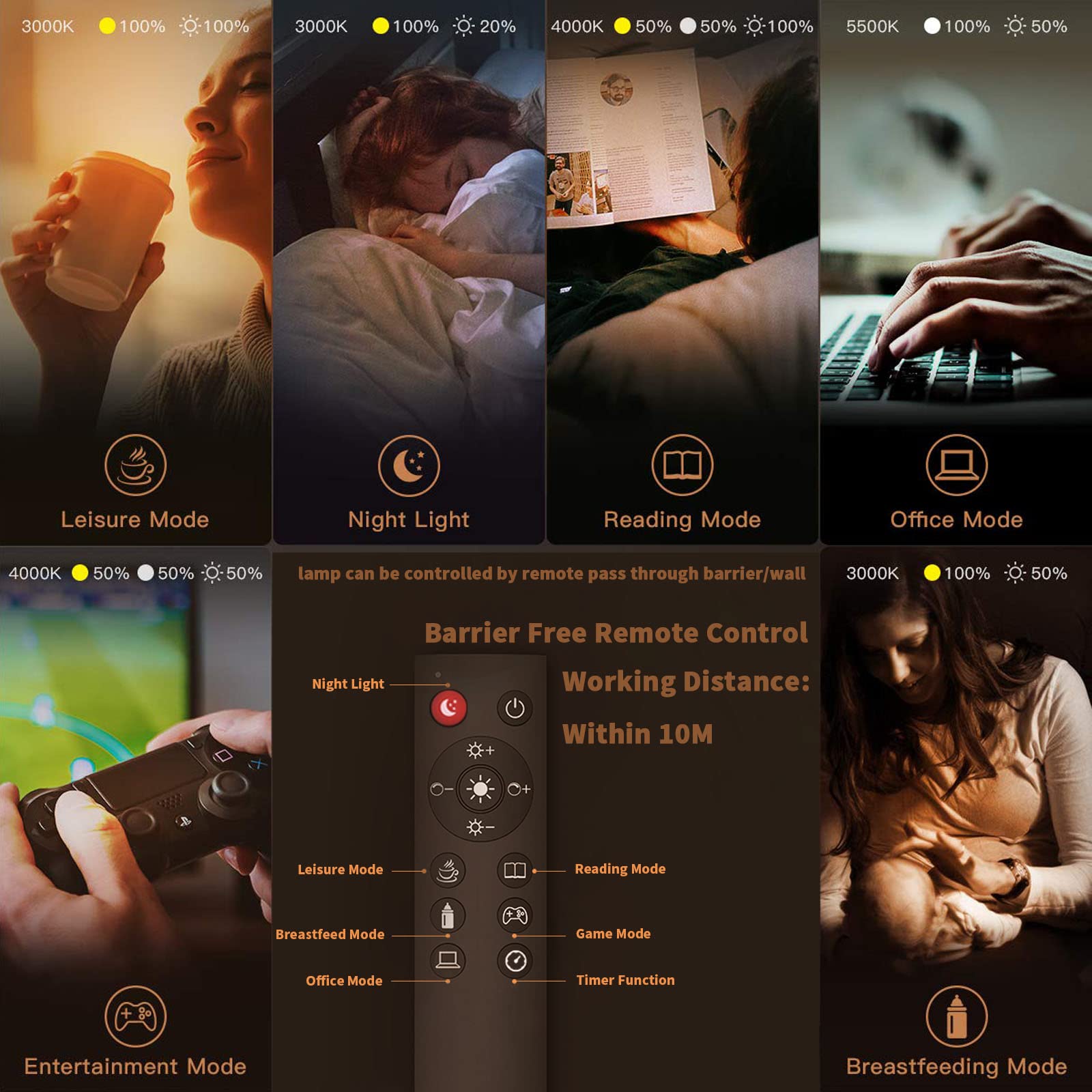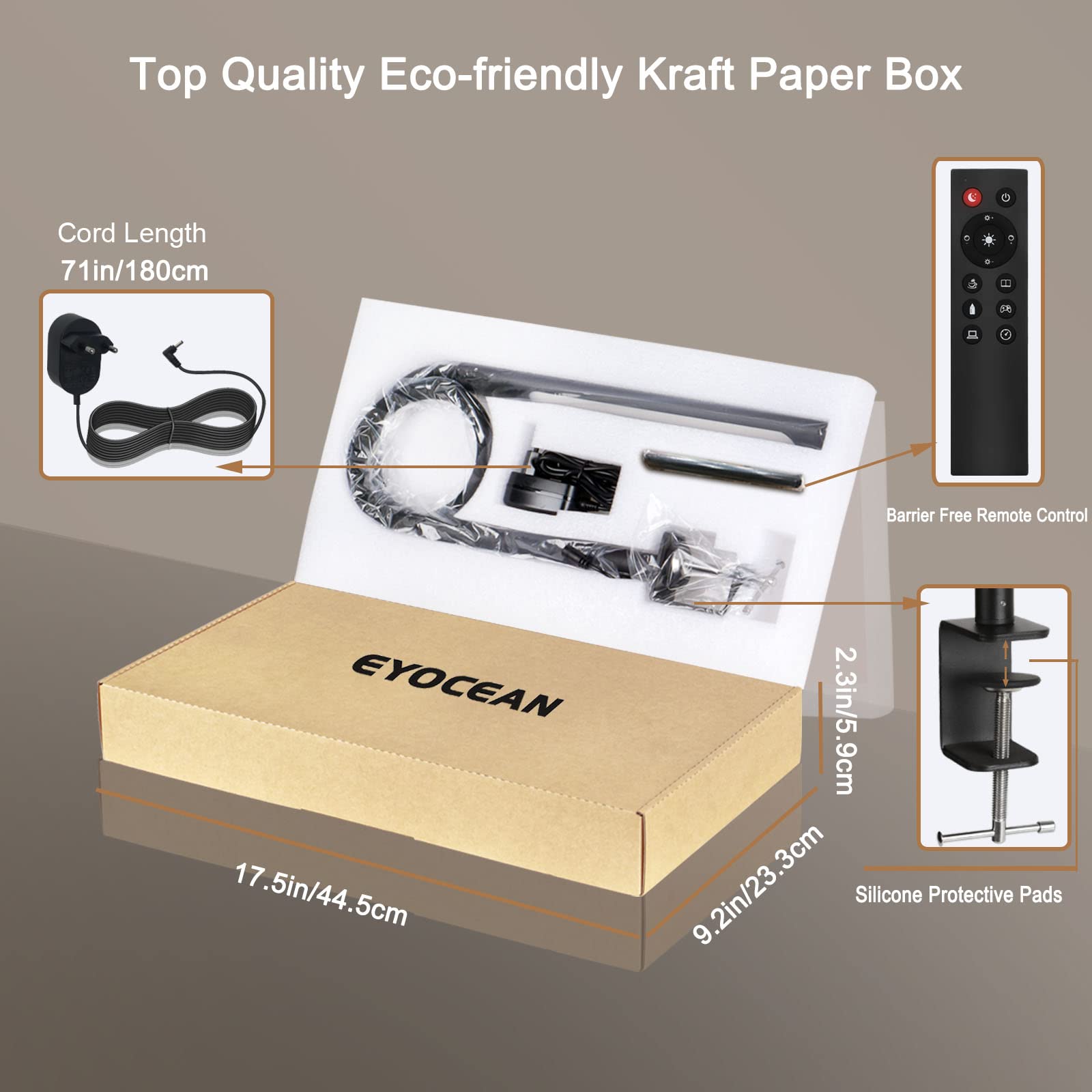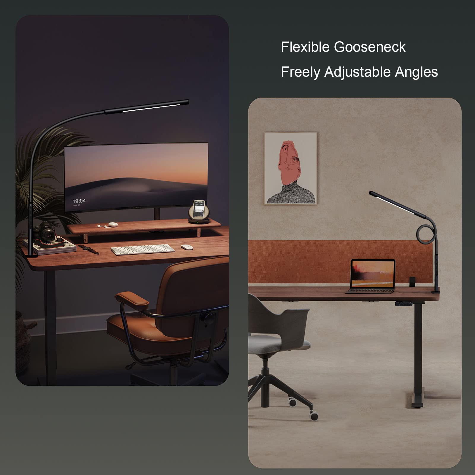 EYOCEAN Schreibtischlampe LED mit Fernbedienung, Verstellbare Schwanenhals Klemmleuchte, Einstellbare Dimmen & Farbtemperaturen, Berührungssteuerung Büro Tischlampe, 12W, Mattschwarz