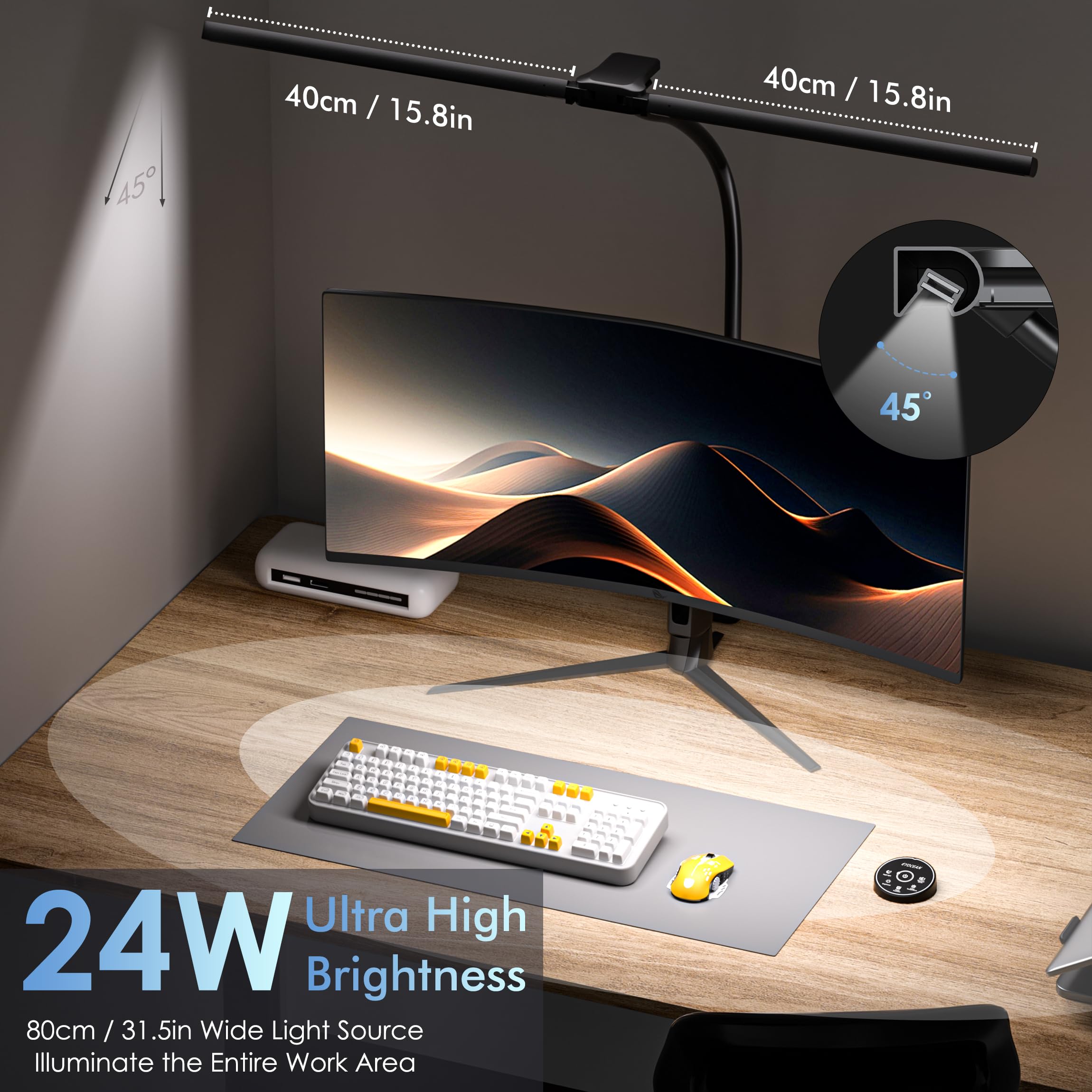 EYOCEAN Schreibtischlampe, Doppelkopf Schreibtischlampe Klemmbar, 24W 80cm Tageslichtlampe Schreibtisch mit Fernbedienung, Dimmbare Monitor Lampe, Büro Tischlampe, Augenschutz Bildschirmlampe