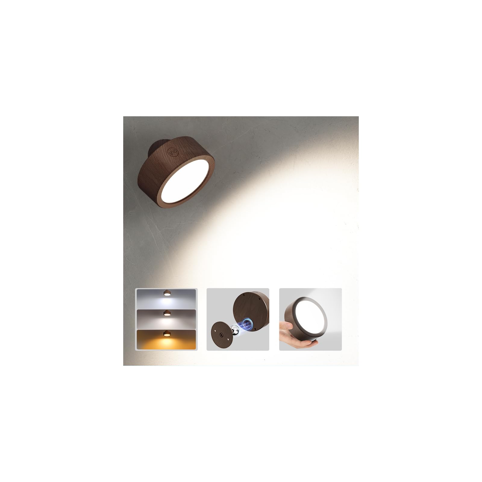 EZVALO Wandleuchte Innen mit 5500mAh Akku, Wandleuchte Kabellos mit Fernbedienung, 3 Farbmodi Dimmbar LED Wandlampe Akku Für Wohnzimmer, Schlafzimmer, Kinder (Nussbaumholz, 1 Stück)