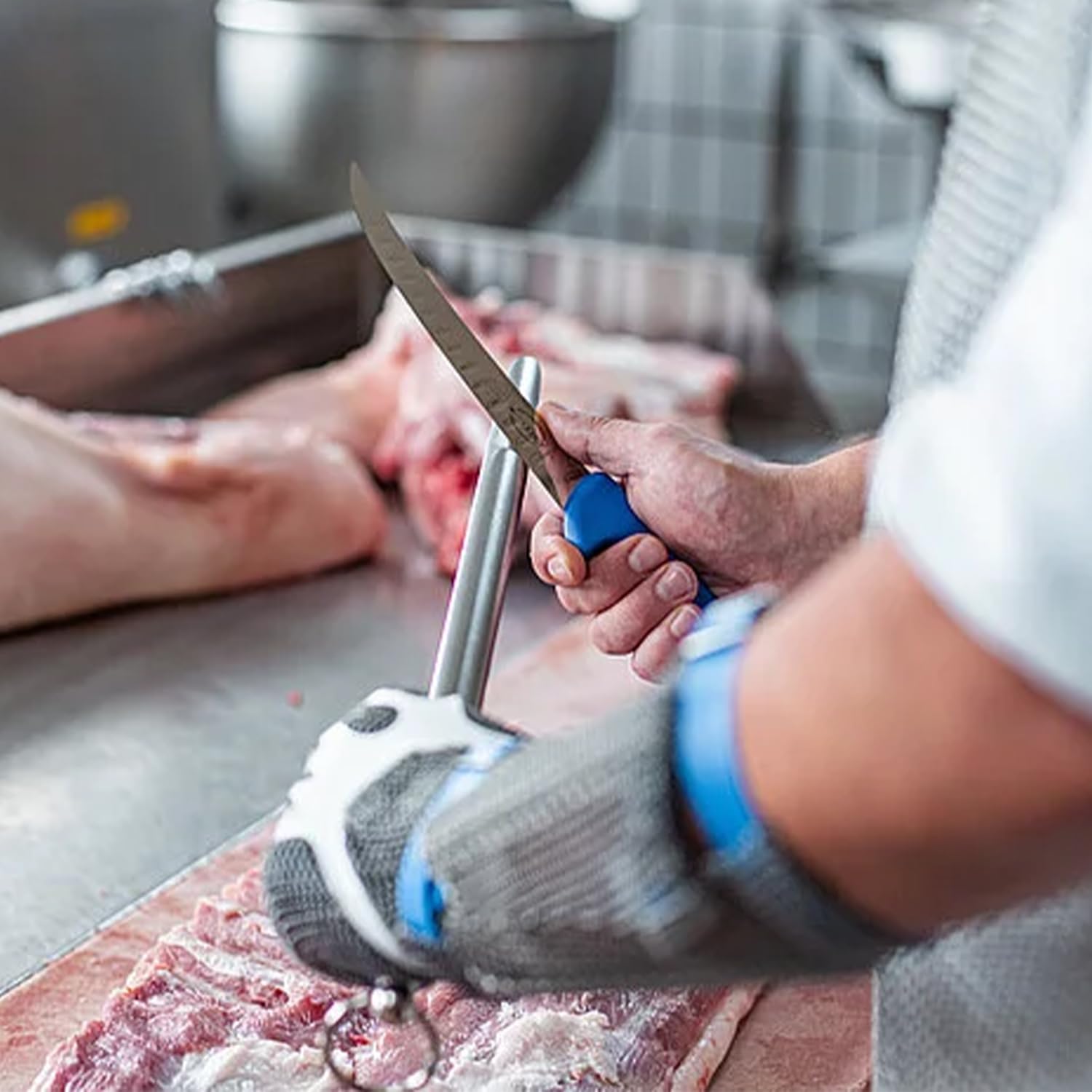 Durch die ovale Klingenform des Wetzstahls hat das Messer eine breite Auflagefläche und Sie erreichen ein schnelles und gleichmässiges Ergebnis.
