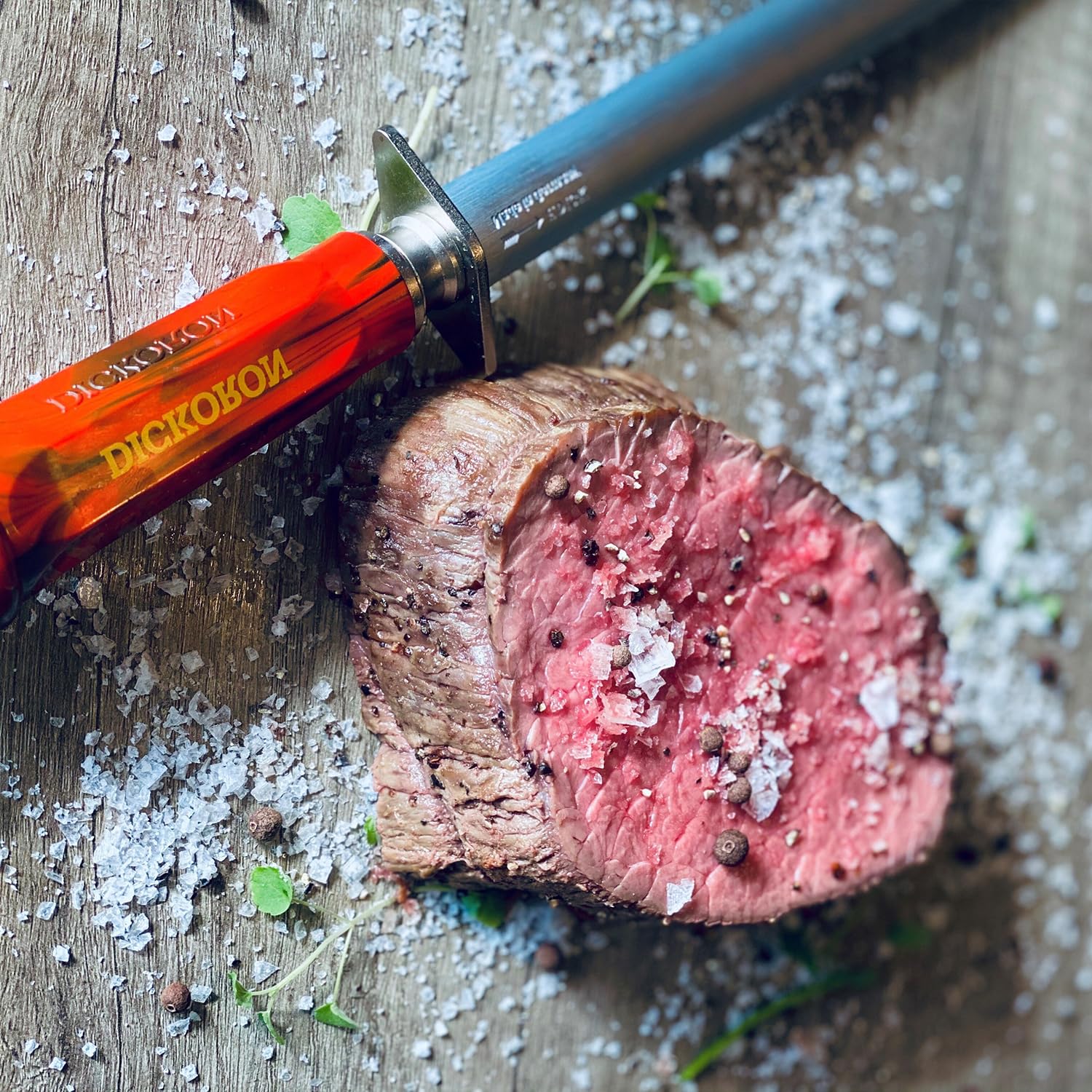 Die richtig geschliffene Messerschneide kann mit dem DICKORON lang scharf gehalten werden, ohne dass die Schneide dabei aufgeraut wird.