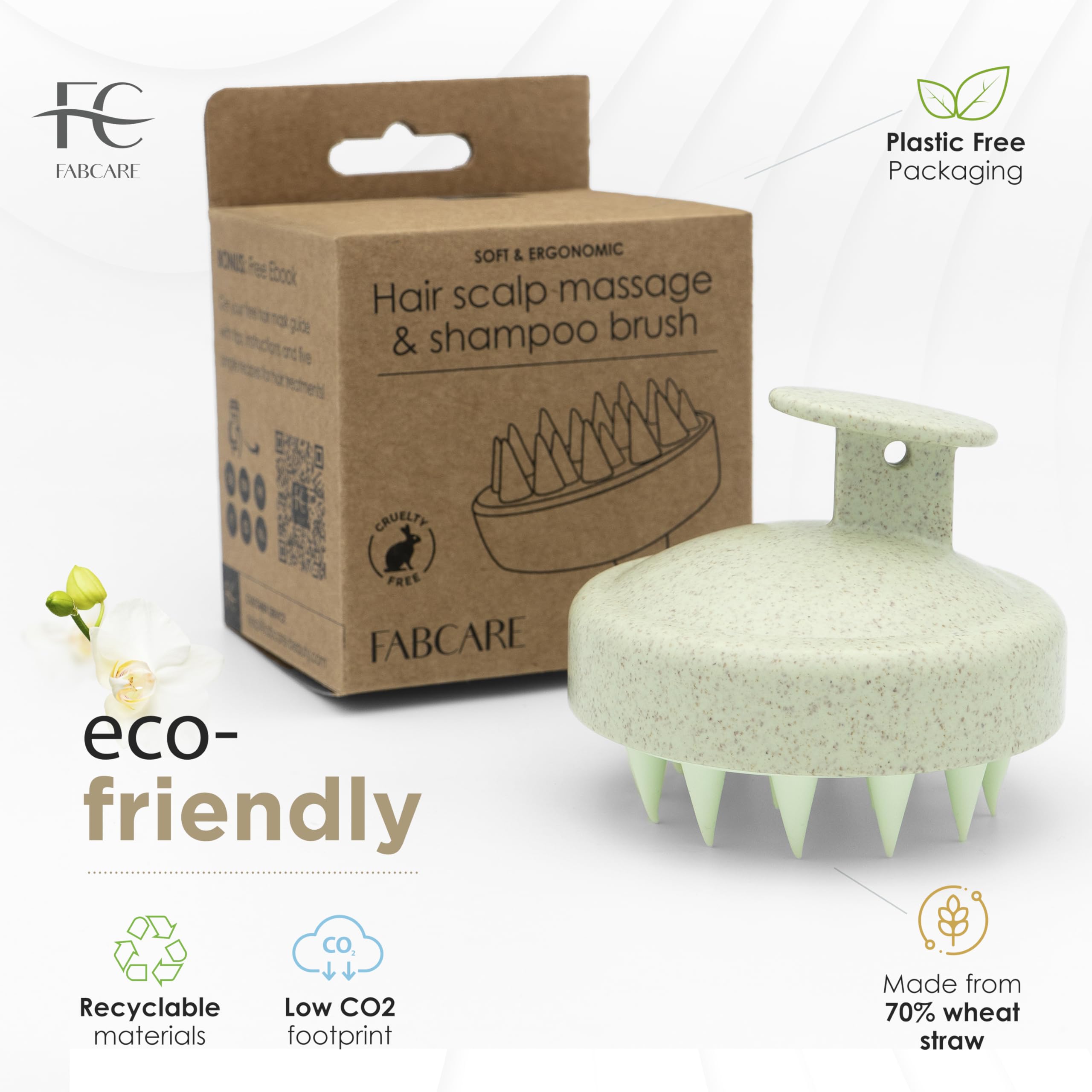FABCARE Kopfhaut-Massagebuerste Gruen – Peeling und Massage fuer nasses oder trockenes Haar, Weizenstroh, fuer alle Haartypen