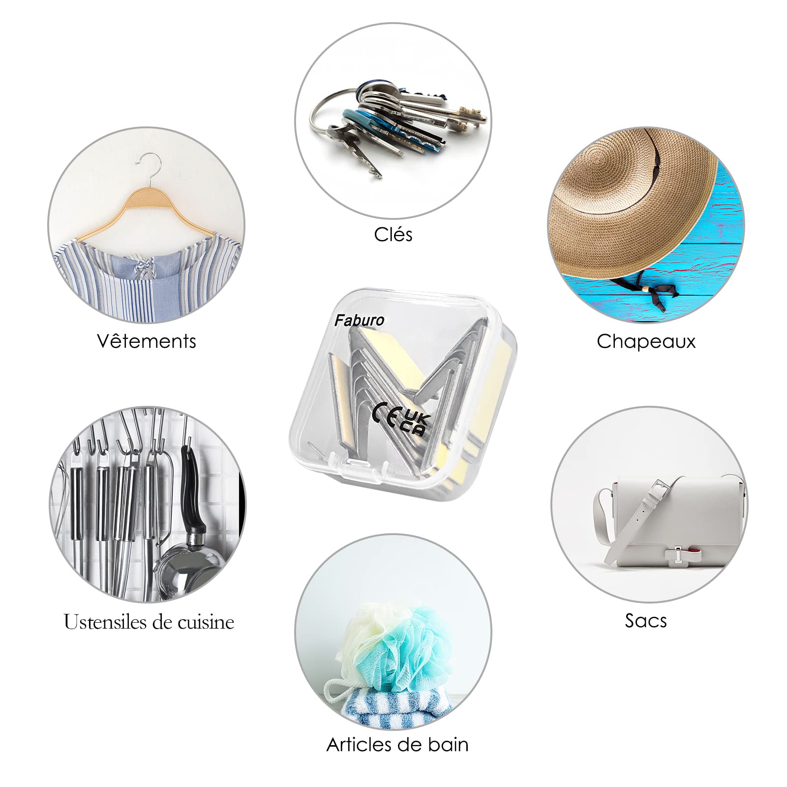 Faburo Klebehaken Set, 12 Stück Haken Selbstklebend, Klebehaken Extra Stark für Wand, Klein Selbstklebende Haken für Badezimmer Wohnzimmer Toilette Büro, Schlüsselhaken Handtuchhaken Ohne Bohren