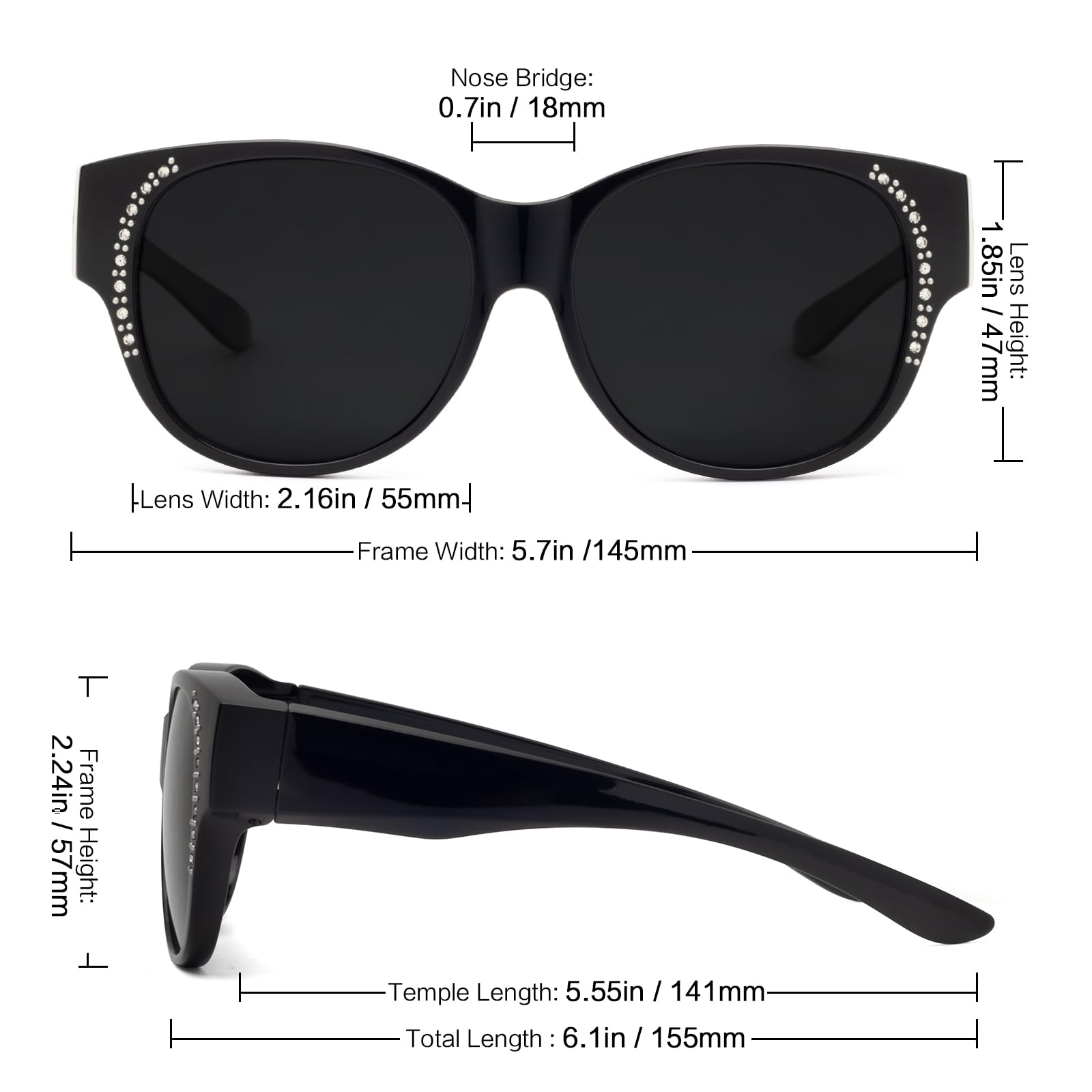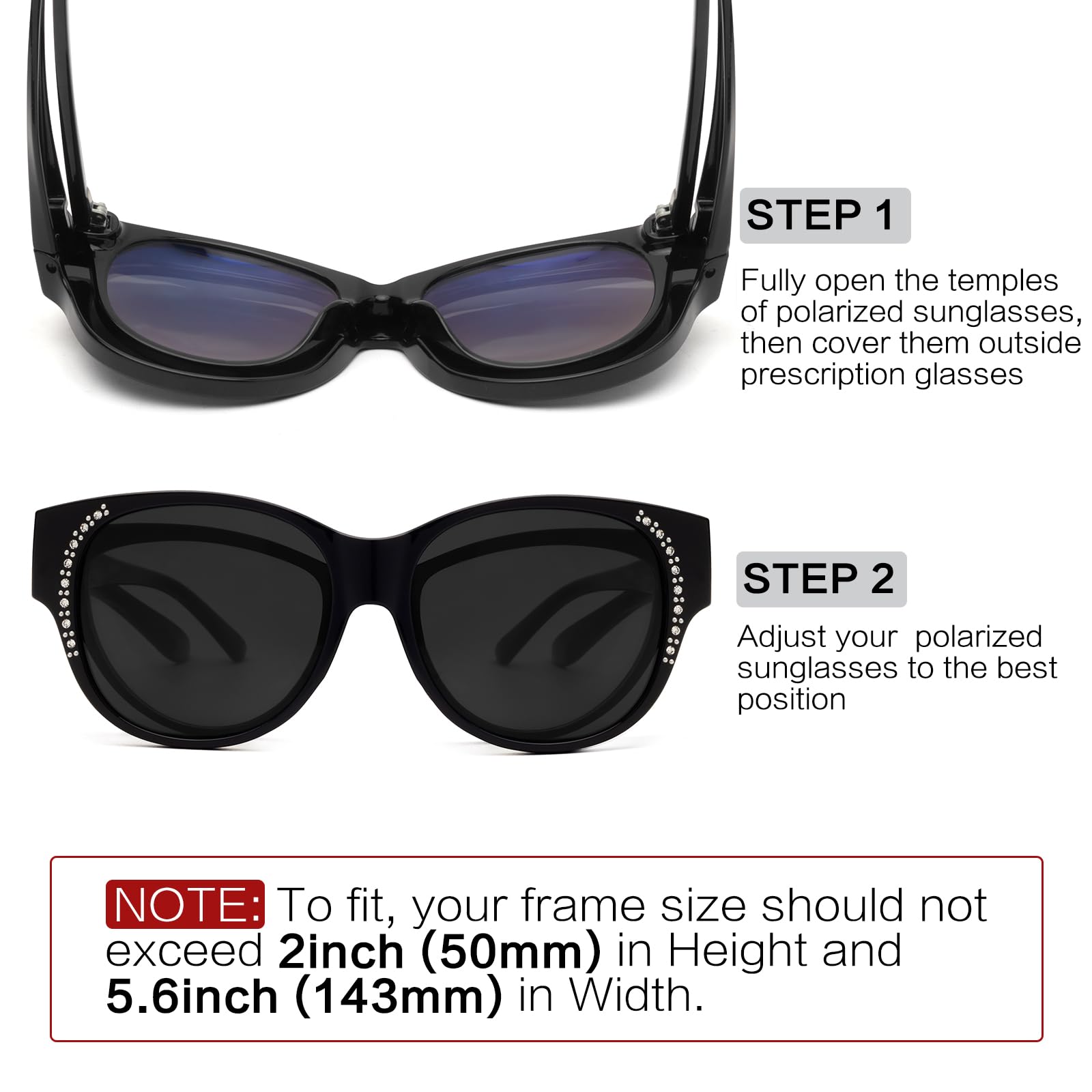 Face Shadow Polarisiert Überzieh Sonnenbrille über Normale Brille Damen UV400 Schutz, Übergross Überbrille für Brillenträger, Ultra Leicht für Fahren, Radfahren, Sport und Freizeit
