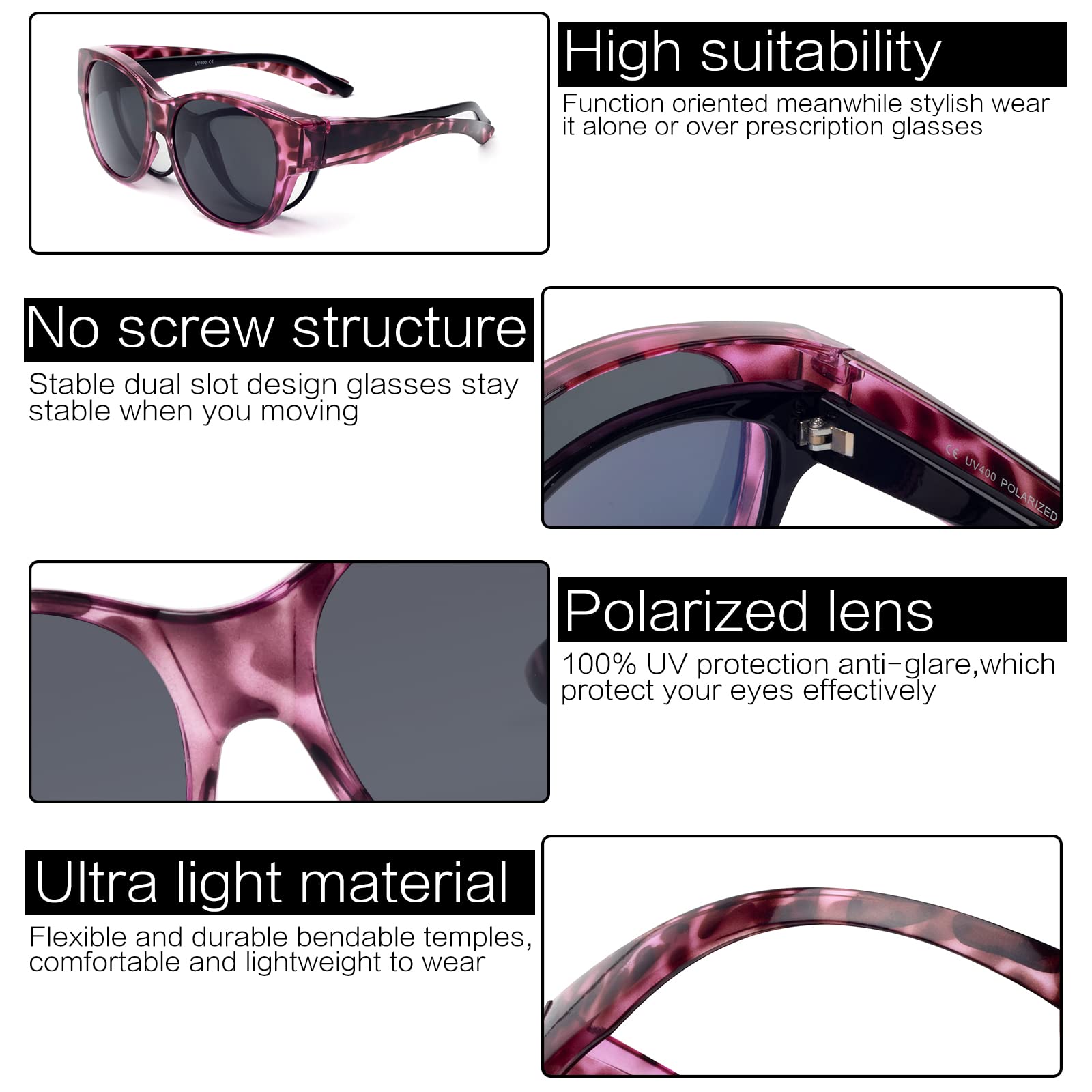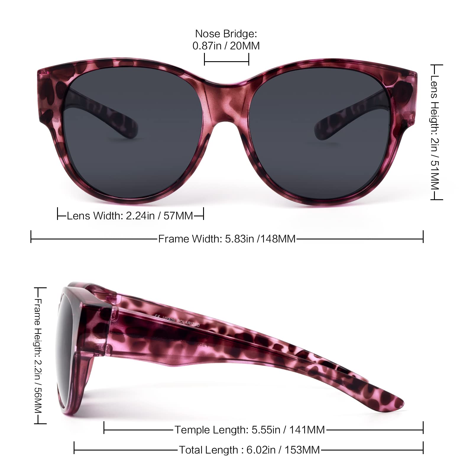 Face Shadow Polarisiert Überzieh Sonnenbrille über Normale Brille Damen UV400 Schutz, Übergross Überbrille für Brillenträger, Ultra Leicht für Fahren, Radfahren, Sport und Freizeit