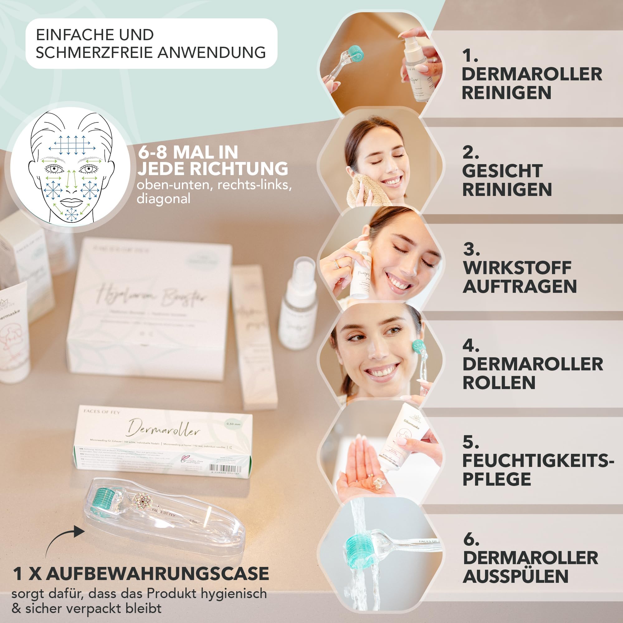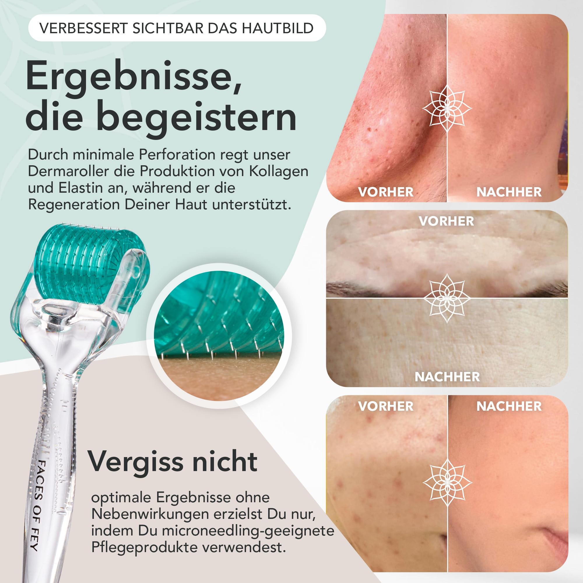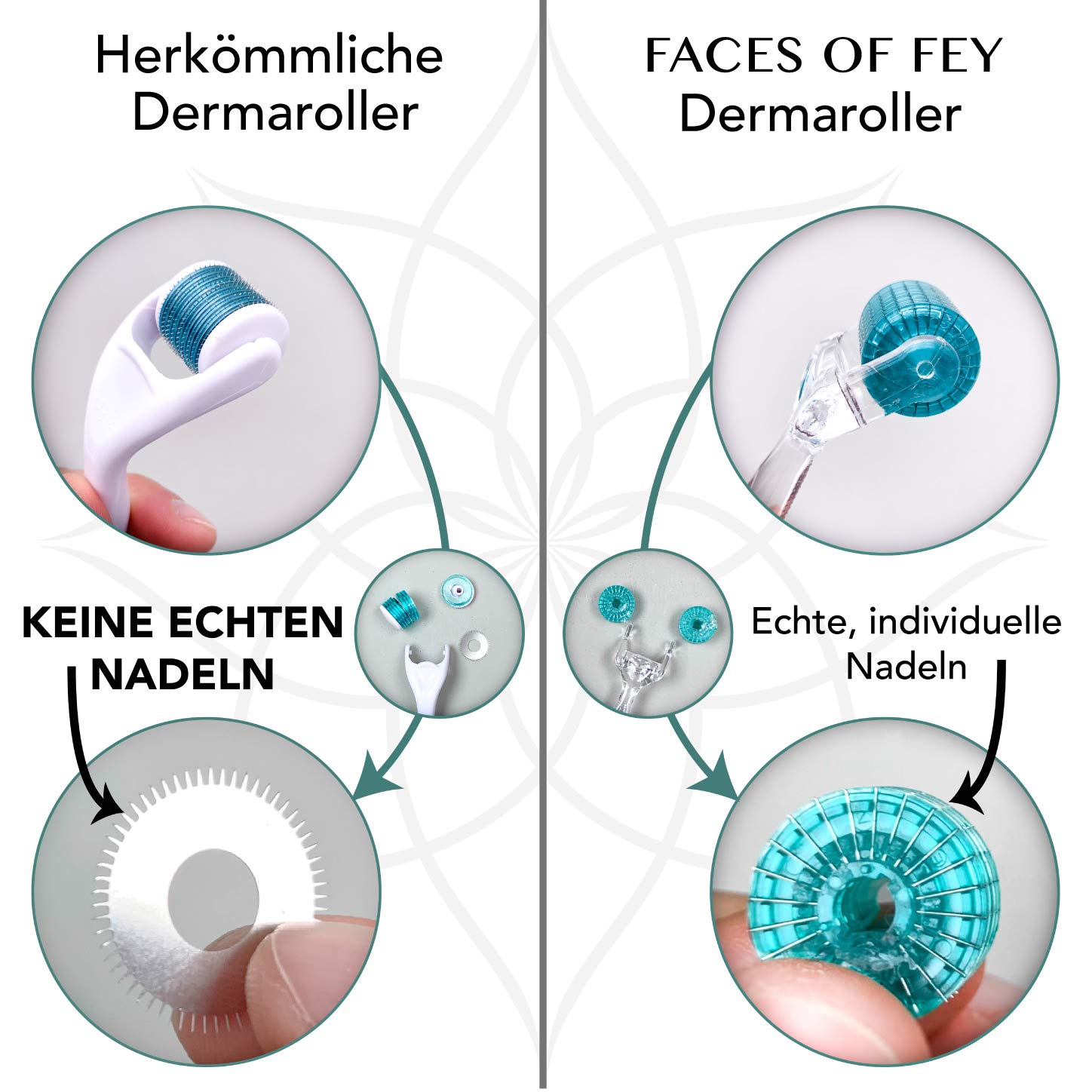 FACES OF FEY Derma Roller – 192 Echte Nadeln | Professionelles Microneedling für Zuhause | Nadelroller gegen Narben, Cellulite & Dehnungsstreifen | Microneedlingroller 0,75 mm