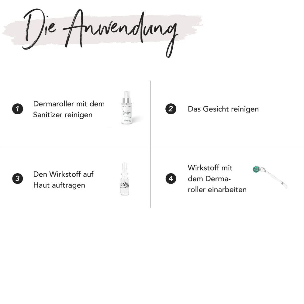 Der Sanitizer sorgt für eine hygienische Reinigung des Rollers nach jeder Anwendung, um maximale Sicherheit und Effektivität zu gewährleisten.