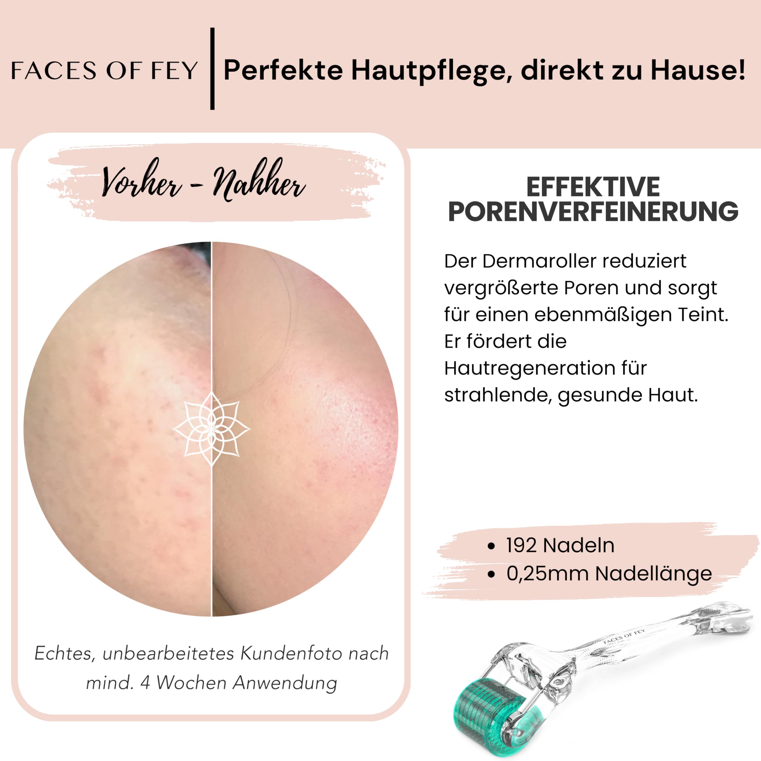 • FACES OF FEY Microneedling Set mit Dermaroller 0,25 mm und 192 echten Nadeln