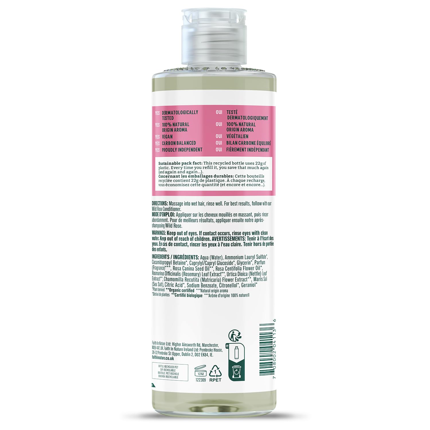 Faith In Nature Natürliches Wildrosen-Shampoo, Ausgleichend, Vegan und Frei von Tierversuchen, Ohne SLS Oder Parabene, Für Alle Haartypen, 400ml