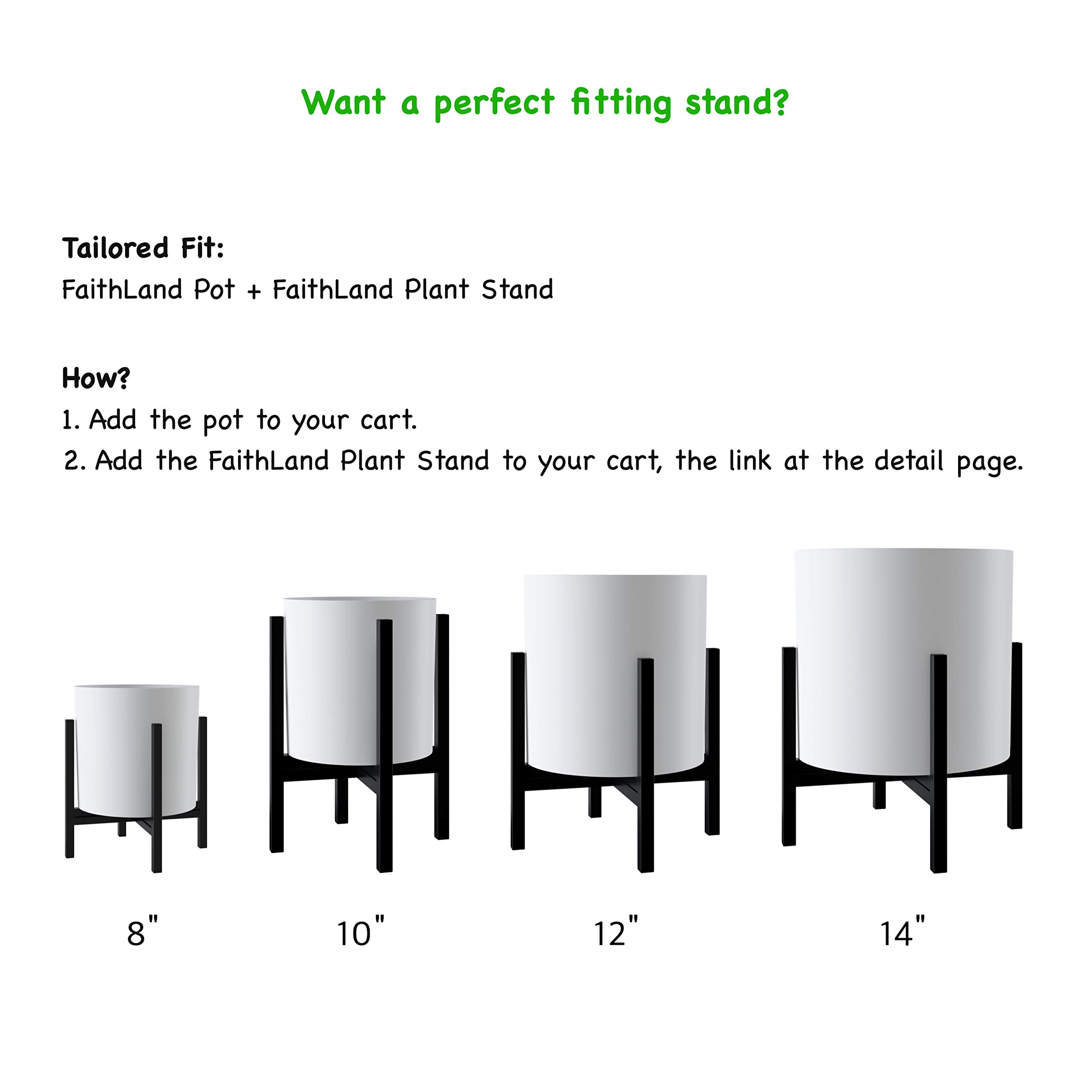 FaithLand Blumentopf, 35,6 cm, perfekt für Moderne Pflanzenständer aus der Mitte des Jahrhunderts, Ablaufstopfen und Drainagegitter, Mattweiss