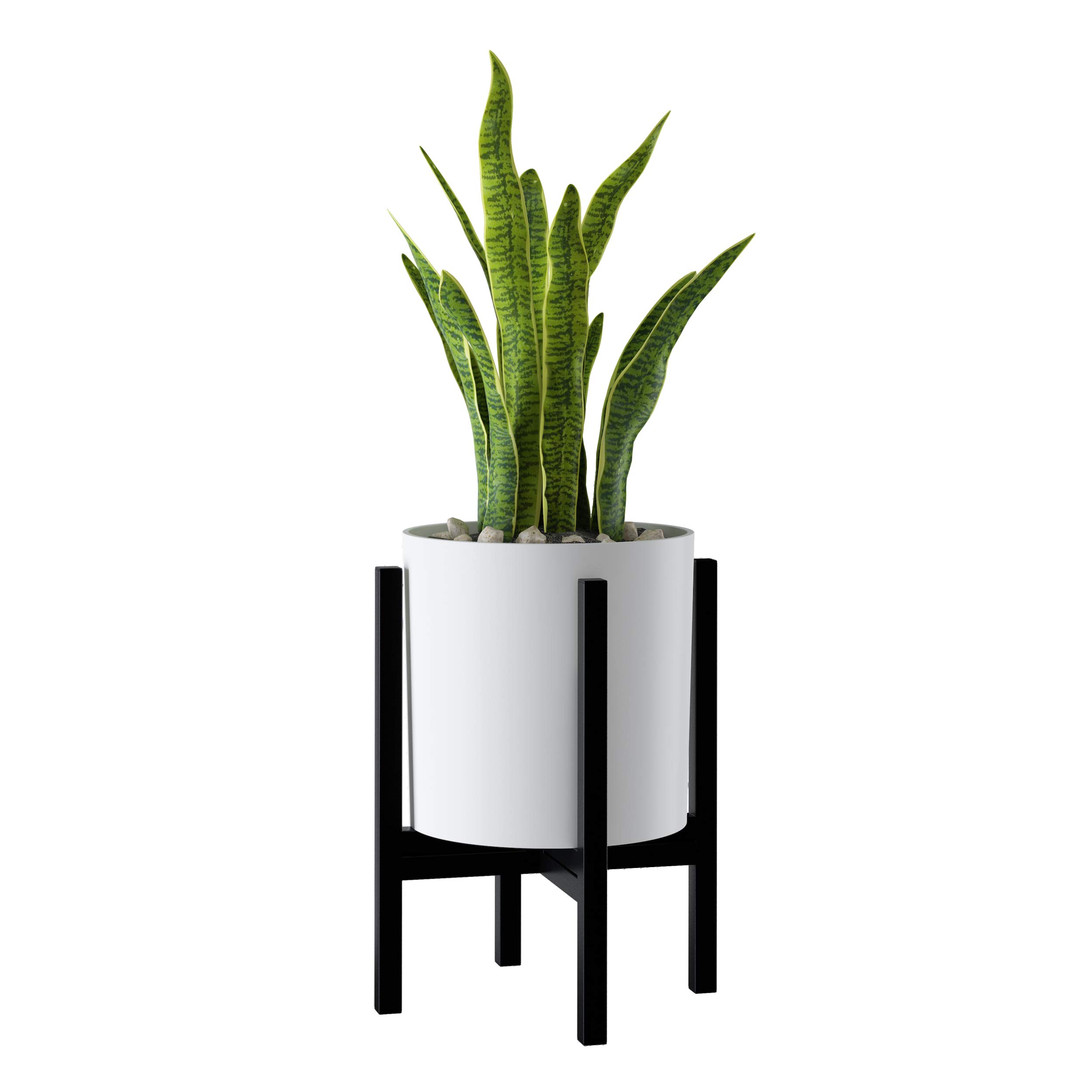 FaithLand Blumentopf 25,4 cm – perfekt passend für Moderne Pflanzenständer Mitte des Jahrhunderts – Ablaufstopfen und Drainagesieb – matt weisser Übertopf – verbessert