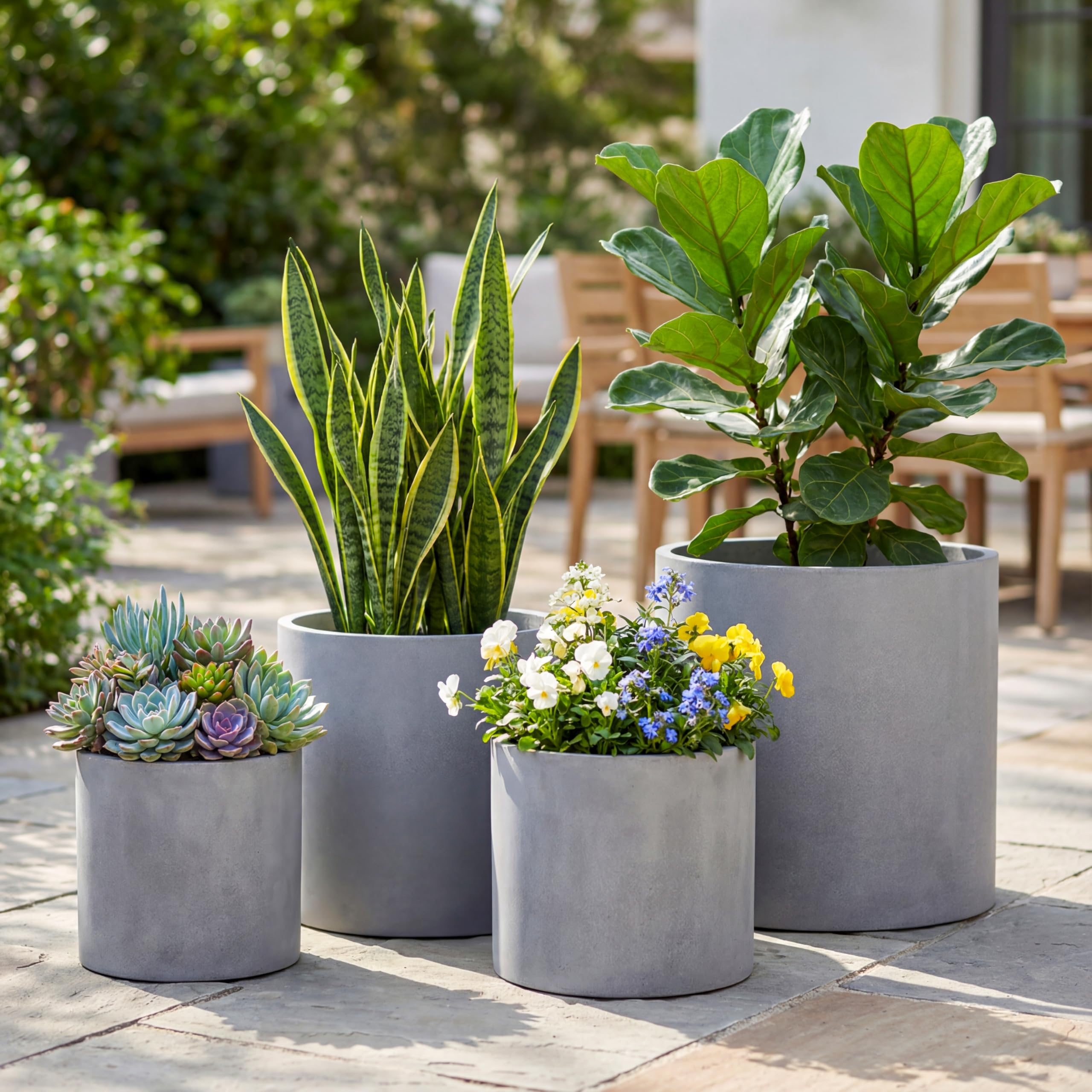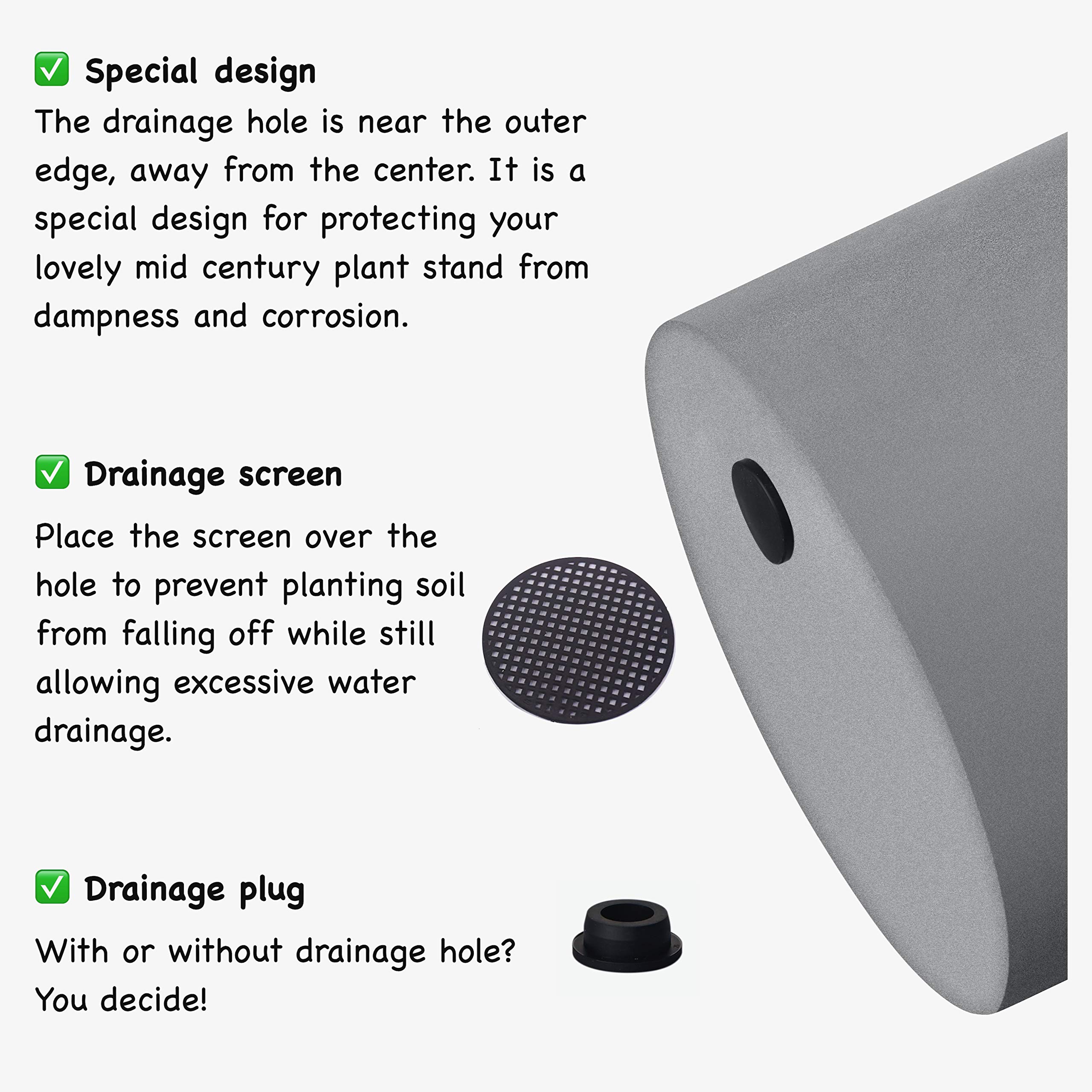 FaithLand Blumentopf, 35,6 cm, Moderne Pflanzenständer aus der Mitte des Jahrhunderts, Drainage-Stöpsel und Drainagesieb, Grauer Übertopf