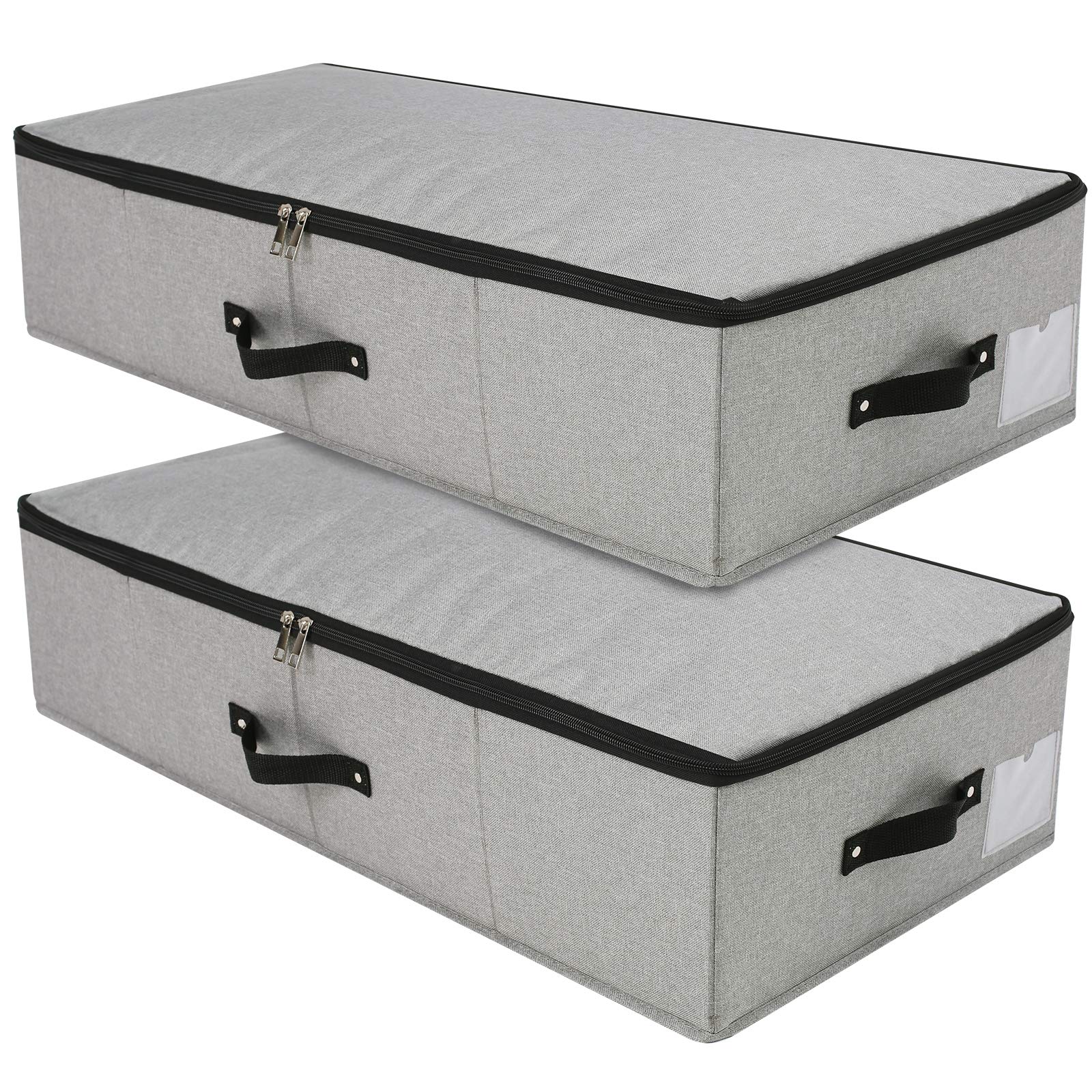 Faltbare Aufbewahrungsbox unter dem Bett mit Kunststoffeinlage, Griffen, Reissverschluss-Deckel, Decken, Kleidung, Bettdecken, Aufbewahrungskorb für Schlafzimmer und Schrank, Dunkelgrau, 2 Stück