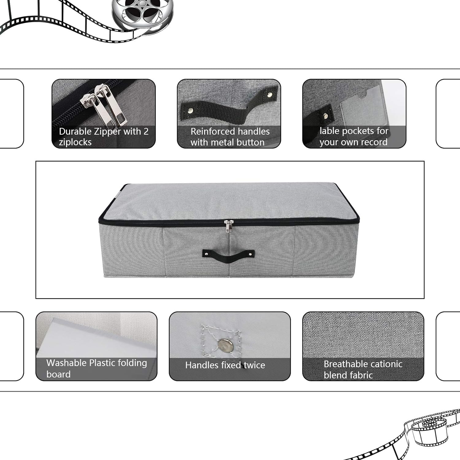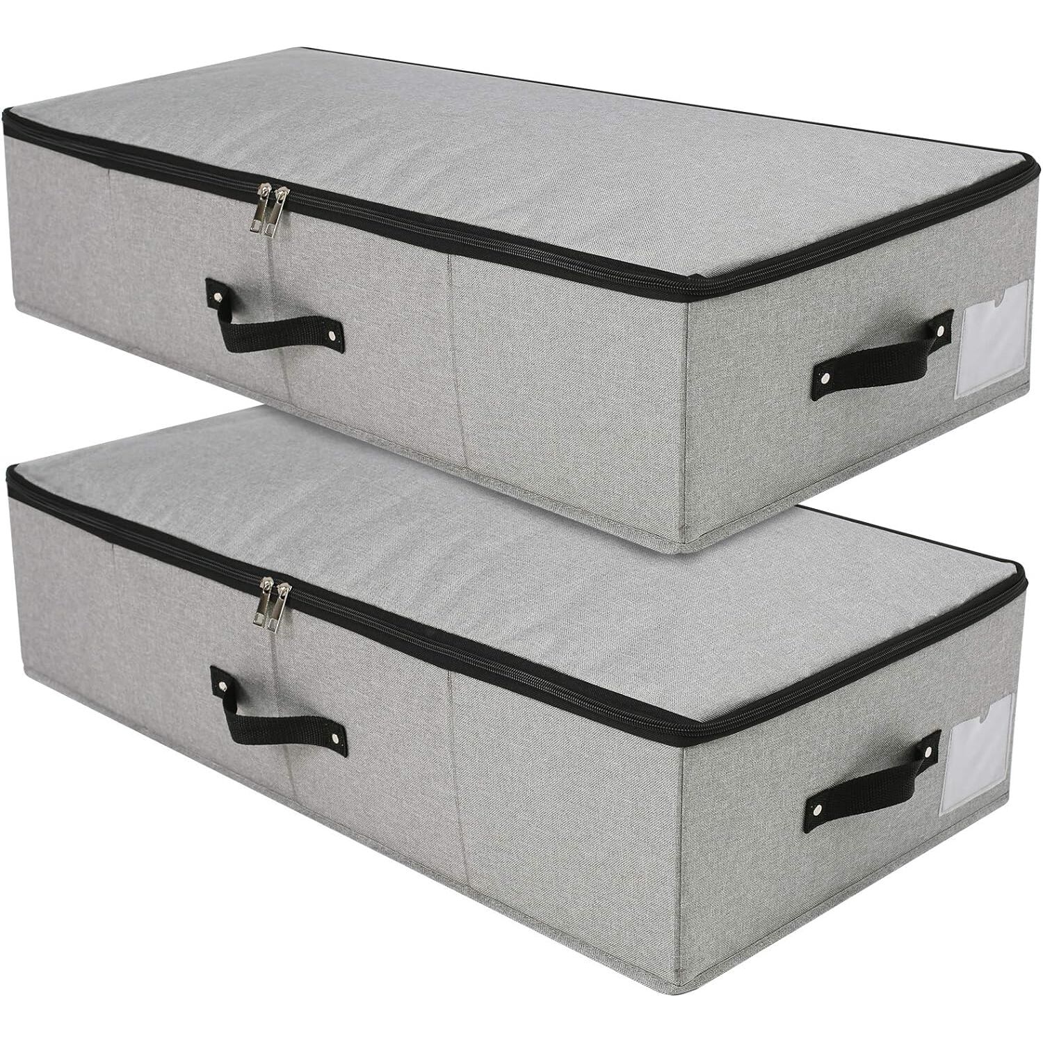 Faltbare Unterbett Aufbewahrungsbox mit Kunststoff-Stützfutter,Decken Kleidung Tröster Aufbewahrungsbehälter Organizer für Schlafzimmer und Schrank, 74.5×38×18cm, Dunkelgrau, 2PCS