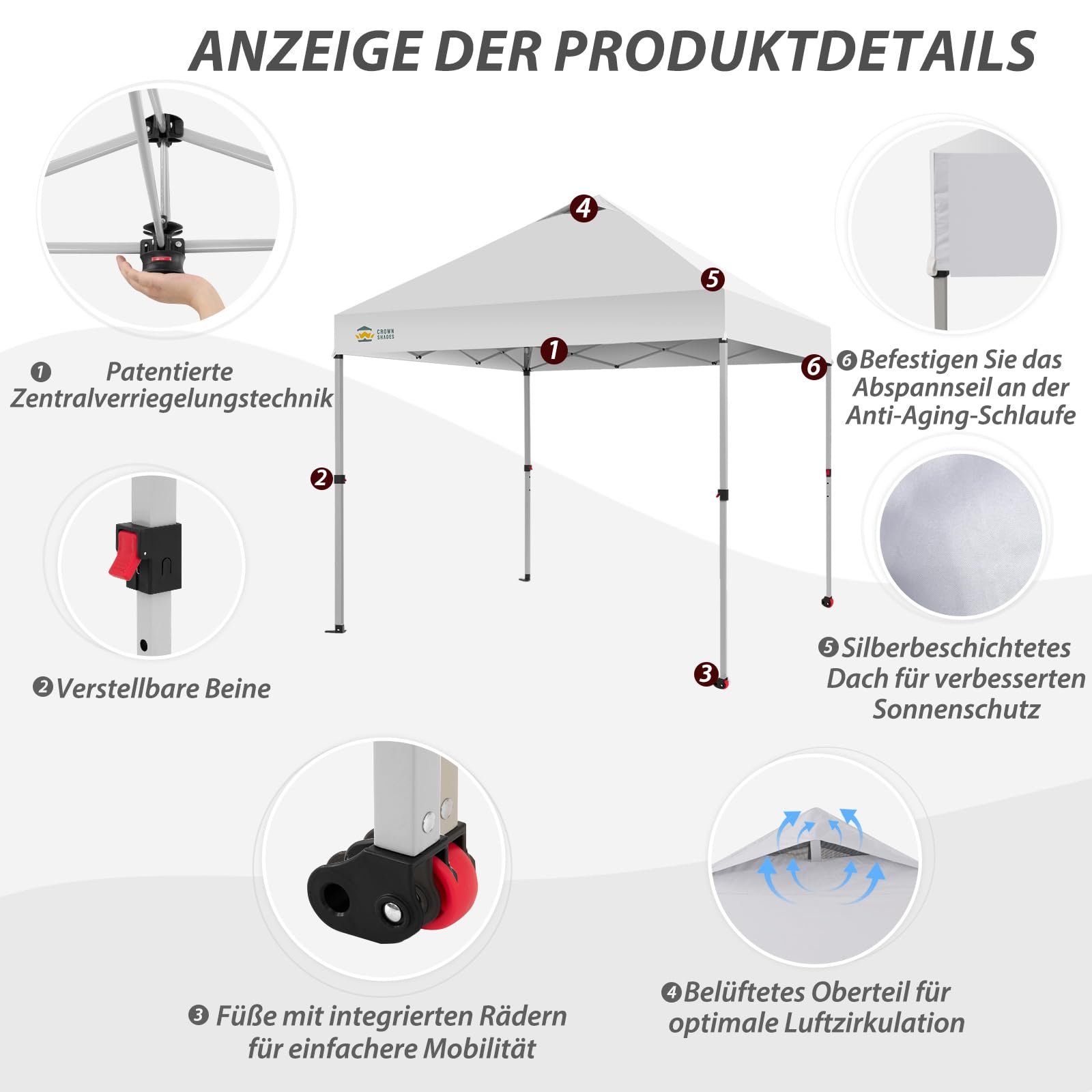 Pavillon 3x3 Wasserdicht Stabil Winterfest, Pop up Faltpavillon UV Schutz 50+, Partyzelt Für Outdoor Camping, 3-Fach Höhenverstellbar, Gartenpavillon mit Tragetasche