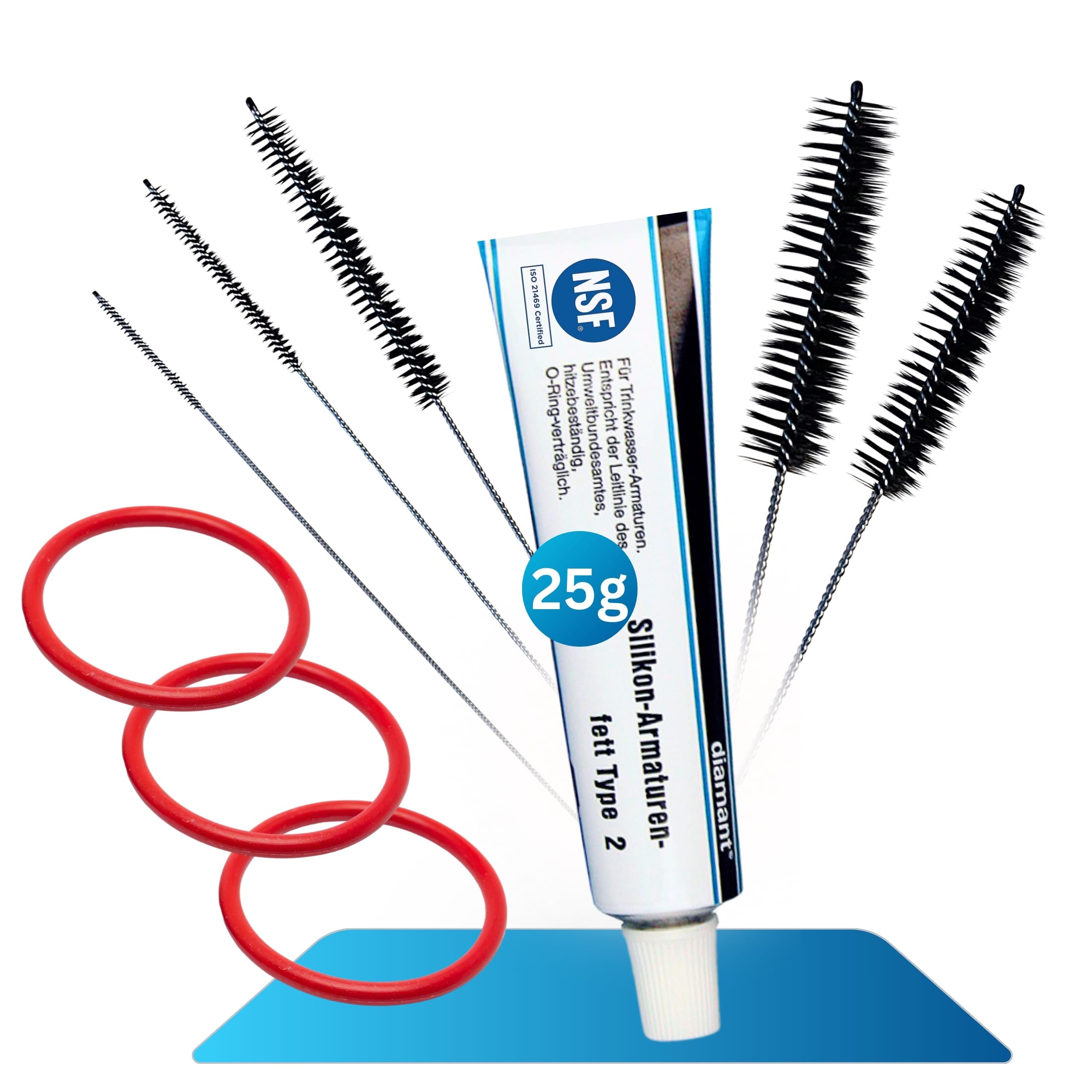 fancility® Set für Brüheinheit DeLonghi & AEG 25g Silikonfett für Kaffeevollautomaten 3 Dichtungen u.a. ECAM ESAM ETAM Brühgruppe 5 Reinigungsbürsten Anpress-Kolben Dichtungsringe O-Ringe Ersatzteile