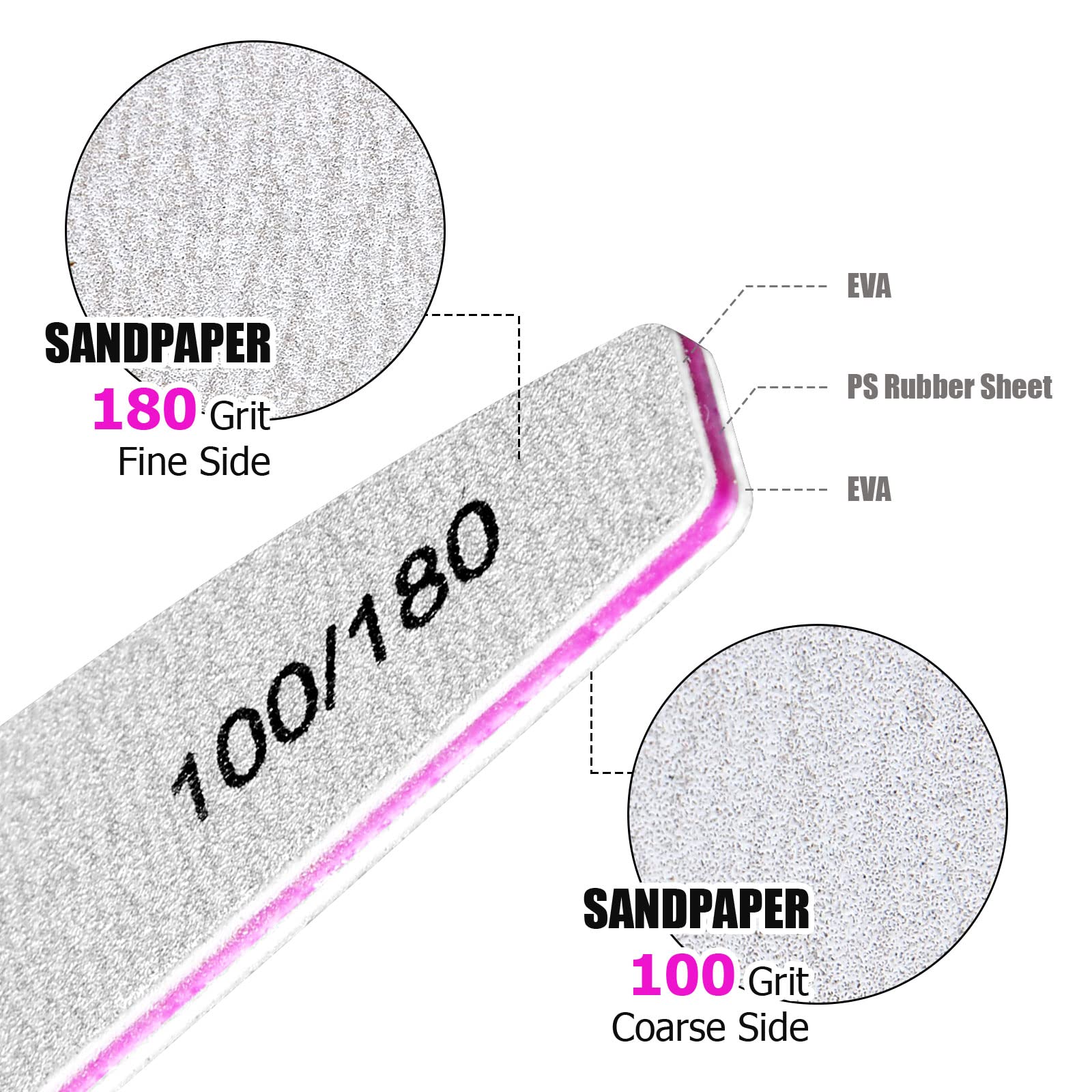 • 180er Koernung: Feiner, perfekt zum Verfeinern der Nagelform, zum Glatten der Raender und fuer die Bearbeitung von Natur- und Acrylnägeln.