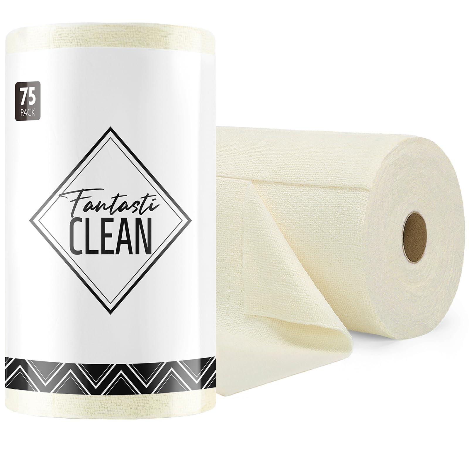Fantasticlean Mikrofaser Reinigungstücher, 75 Stück pro Rolle Abreissbare Putztücher, Wiederverwendbare Fusselfreie Lappen für Auto, Küche und Haus 30x30cm-Beige