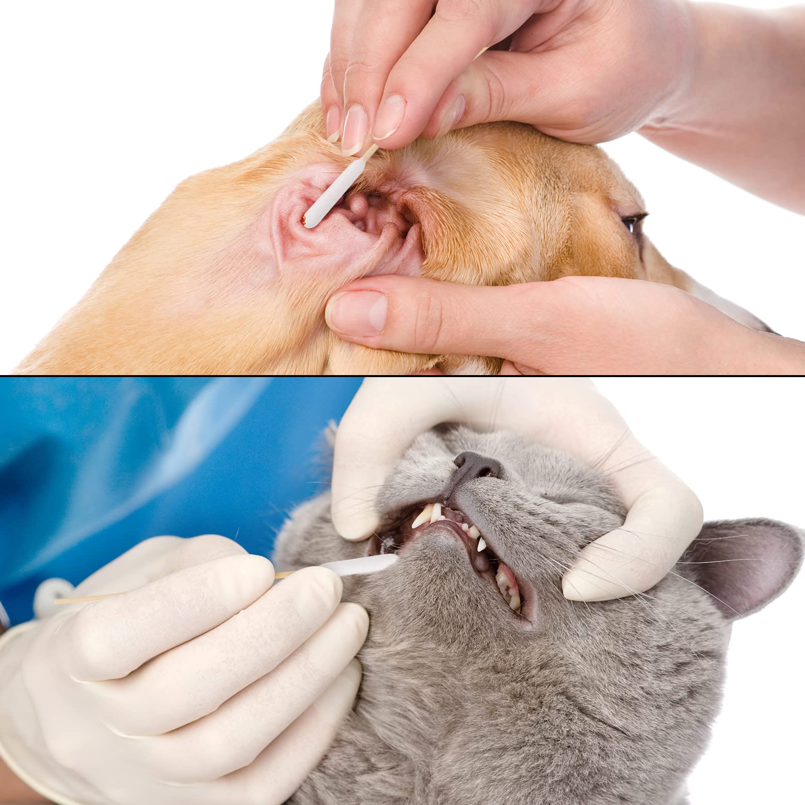 FANTESI 200 Stück Hunde Wattestäbchen Ohrreiniger für Haustiere Ohrreinigung für Hunde, 15 cm Ohrreiniger Ohrreinigungsstäbchen für Haustiere Hund, Katze (4-Packungen)